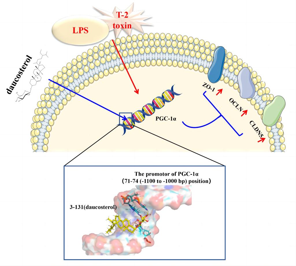 国家兽药残留基准实验室-兽医药理学与毒理学王旭教授团队评估了PGC-1α对T-2毒素诱导的血脑屏障损伤的潜在影响,并筛选出小分子化合物3-131(胡萝卜苷)可预防毒物造成的血脑屏障损伤。相关成果以“Daucosterol confers protection against T-2 toxin induced blood-brain barrier toxicity through the PGC-1α-mediated defensive responsein vitroandin vivo”为题发表在Journal of Hazardous Materials上。该研究采用分子生物学结合分子对接的技术,从中药小分子化合物中筛选出直接激活PGC-1α转录的新型活性分子,并阐释了其抵抗T-2毒素诱导的血脑屏障毒性的作用机制,更好地诠释了中药小分子化合物对血脑屏障的保护作用,为其成药性及更为广泛的神经系统保护应用提供了科学依据。