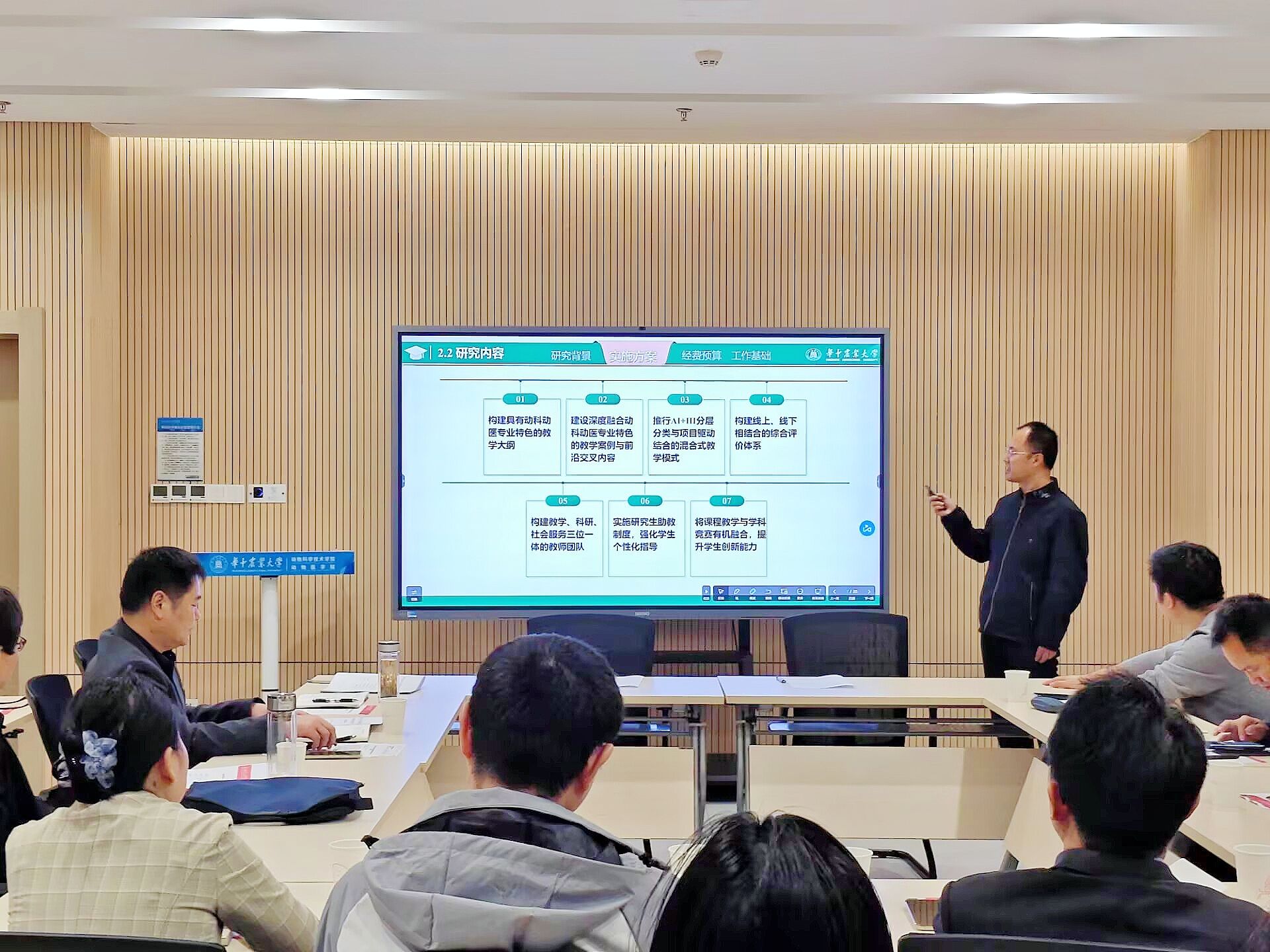 仪式上,项目负责人梁建功教授首先汇报动科动医学院教学改革项目申报情况。他从研究背景、实施方案、经费预算及工作基础四个方面,介绍了面向动科、动医专业需求的化学基础课程跨学科教学改革与实践方案。梁建功表示:“此次改革聚焦化学与动物医学、动物科学的交叉融合,采用‘广度与深度兼顾、知识掌握与能力培养并重、素养提升与素质培育结合’的新型教学模式,率先面向2025级新生同步开展化学理论课程与实验教学的改革实践。”通过该项目的实施,希望促进动科动医学院本科生公共基础课教学质量的同时,通过两个学院之间的教学、科研交叉融合,打造一支教学、科研、社会服务于一体的高素质队伍。
