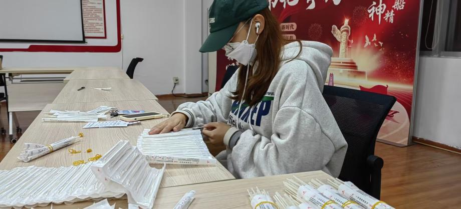 图2:志愿者正在拆装整理咽拭子