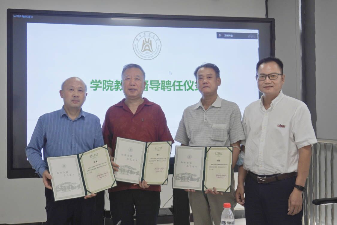 教学督导聘任仪式上,刘兴斌为优秀教师倪德斌、邱德新、伍晓雄颁发聘任书,从当日起,正式聘任三人为学院教学督导。颁奖仪式后,任竹青对新聘任的教学督导表示祝贺,他简单介绍了三位受聘人的工作资历,并对三位受聘教师的工作能力表示肯定。