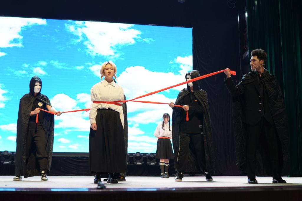 (通讯员:吴佳莉 摄影:熊丽雯)4月10日晚,华中农业大学第十四届心理情景剧决赛在大学生活动中心剧场正式开赛。动科动医学院瑧行剧社作品《梦醒时分》荣获三等奖。该作品通过演绎女主人公荒诞的梦境揭示了盲目内卷并不能追求到真正的幸福的道理。