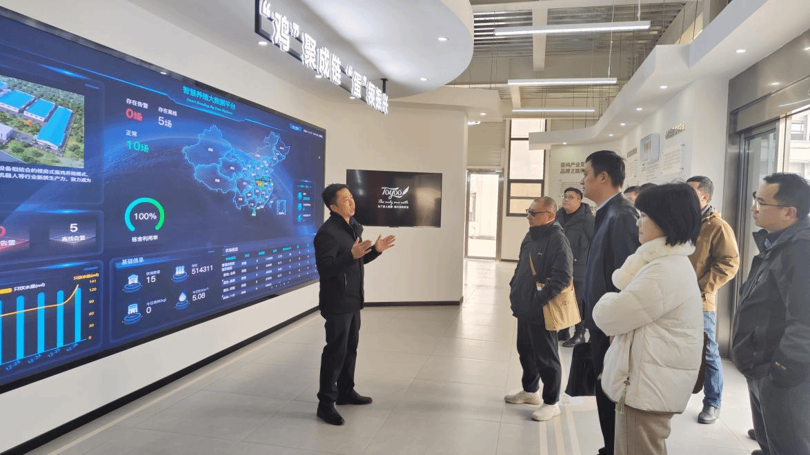王志刚对华中农业大学和新洲区人民政府为公司提供的重要人才支持和政策扶持表示感谢。他介绍了公司的发展情况和产业布局,带领参观了公司展区、现代化鸡舍等地,现场展示了企业运营情况,并针对公司发展情况交流了人才招聘和技术支持需求,表示希望与学校进一步深化技术合作、招聘优秀人才,助力智能化、现代化、规模化养殖模式建设。
