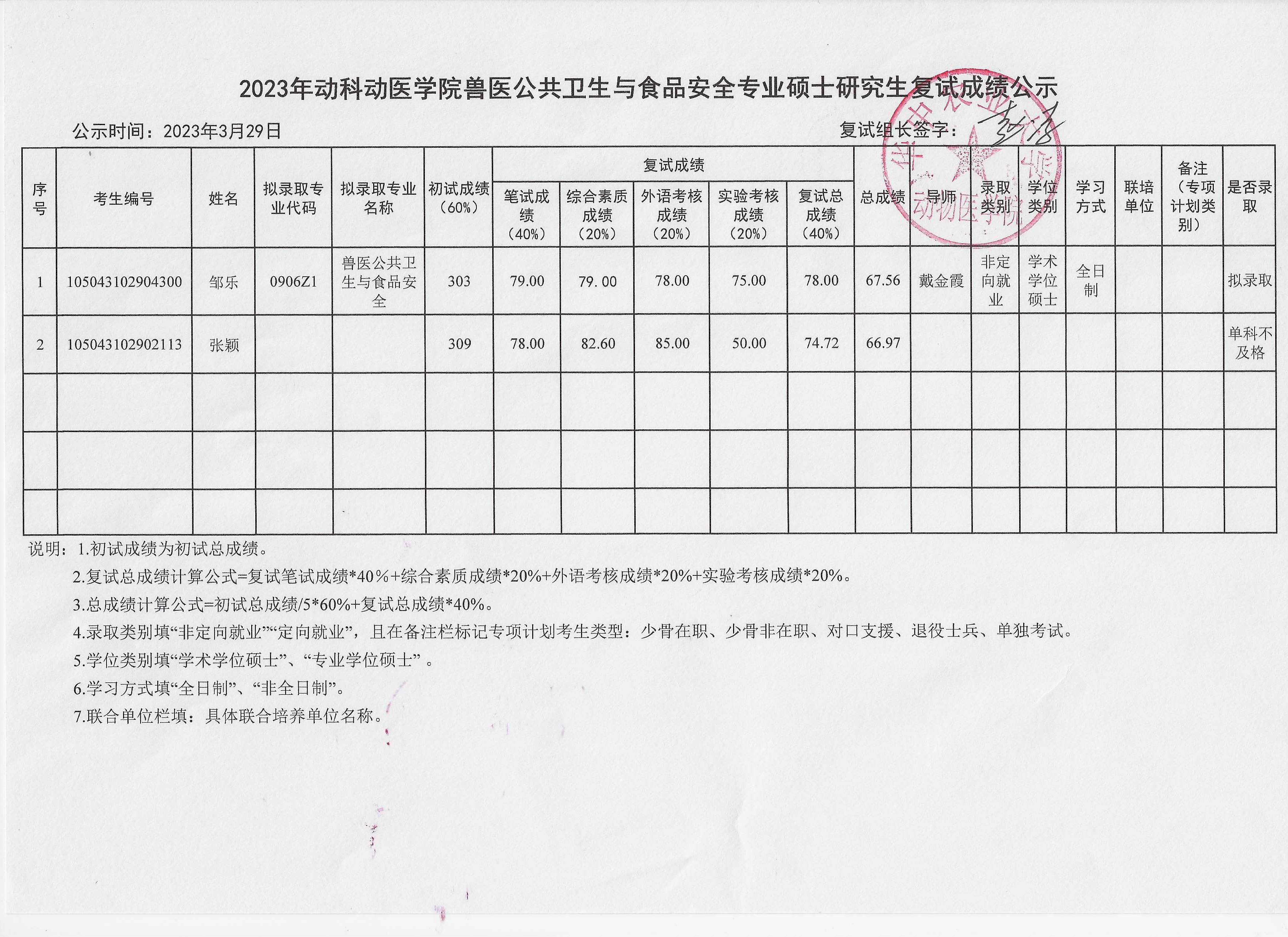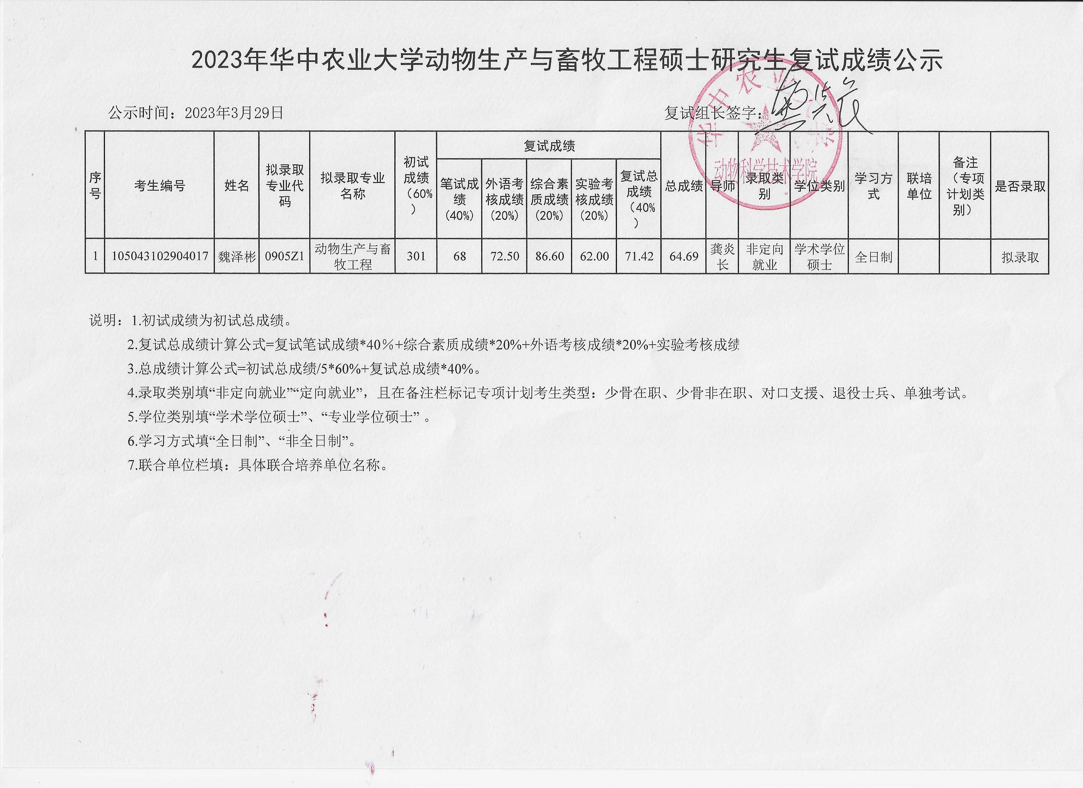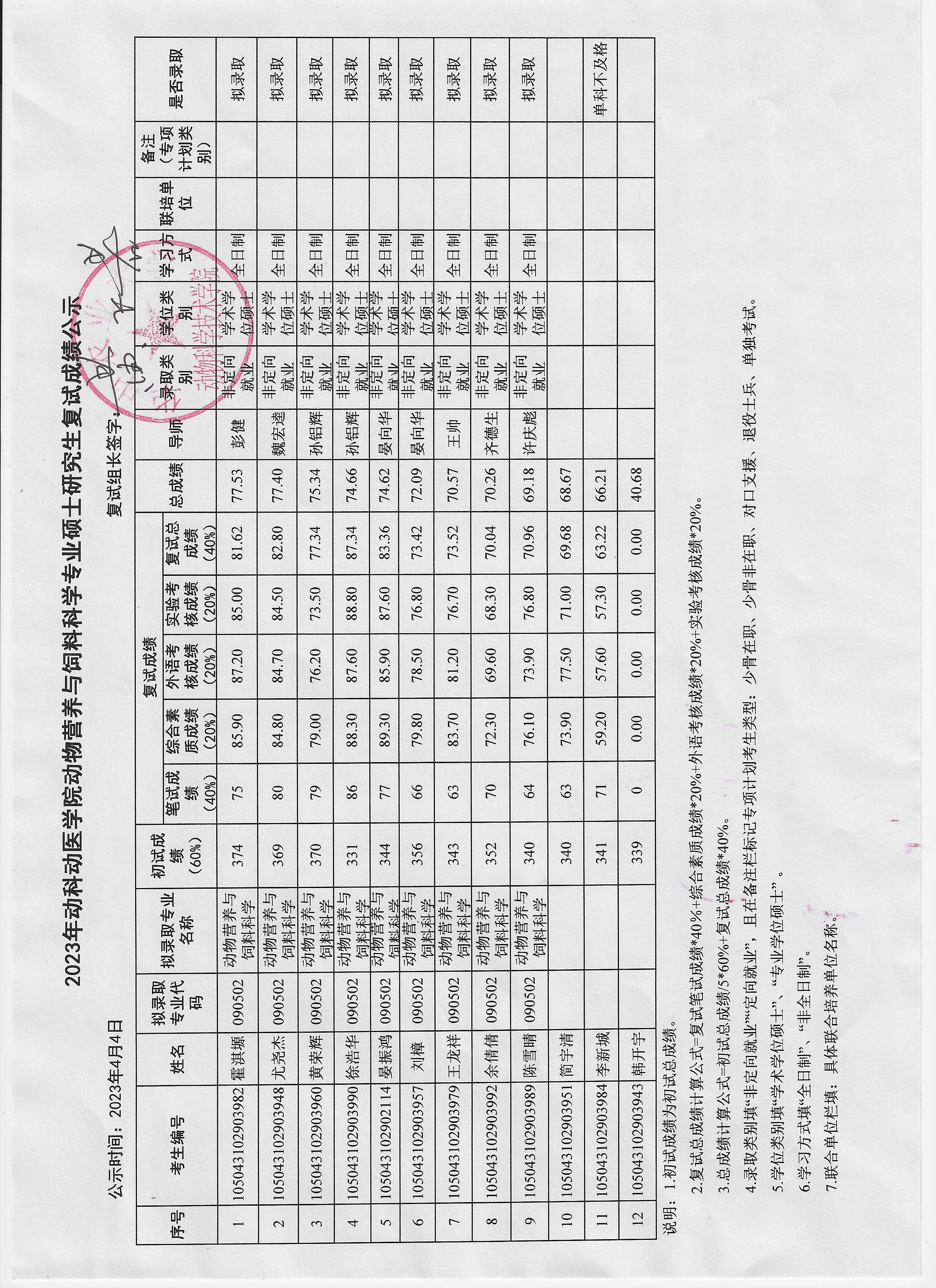农业硕士(畜牧)复试成绩公示-少骨计划