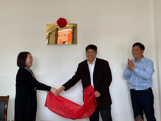 何启盖教授、何信龙董事长、杨丽局长共同完成揭牌仪式(赵月桥 摄)