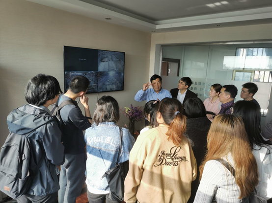 师生参观公司繁殖场和发酵饲料贮存间。通过监控视频和环绕繁殖场外围,何董就猪场结构布局、生物安全防范、饲养管理、无害化处理等方面的优秀举措与同学们展开交流,大家纷纷为公司卓越的生产成绩感到赞叹。在发酵饲料贮存间,何董介绍了公司独创的构树发酵饲料,该饲料有蛋白含量高、适口性好、耐储存、促生长效果佳等优点,是公司下一阶段发展的重点产品。