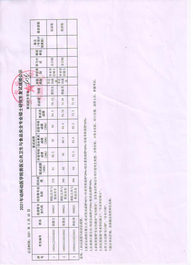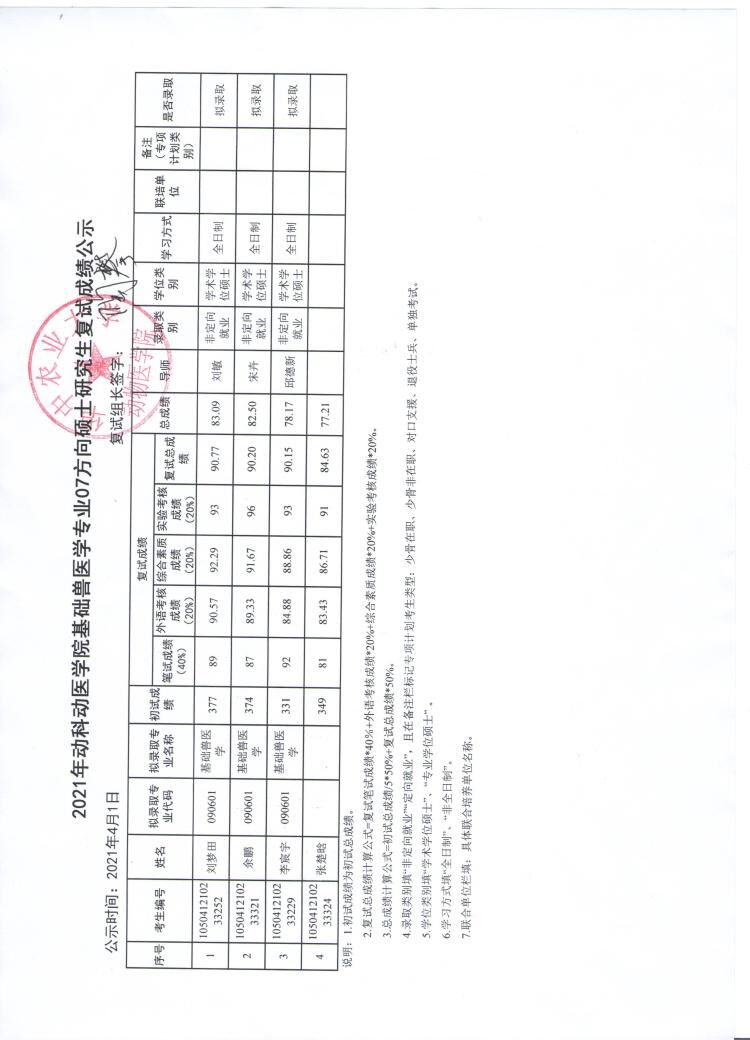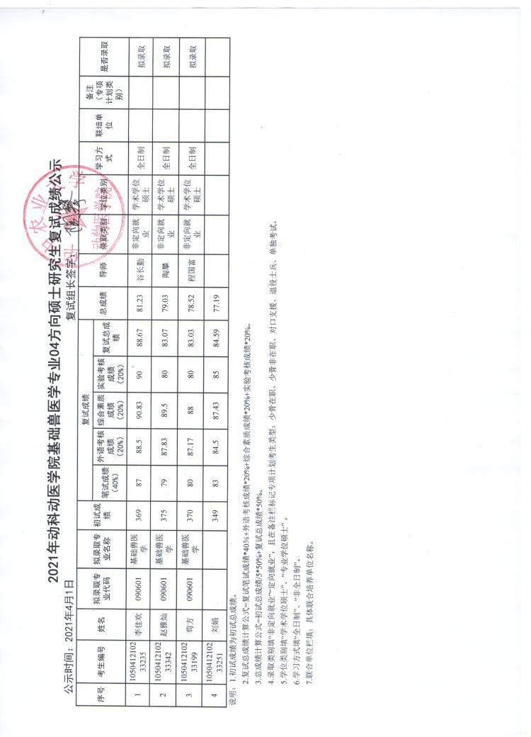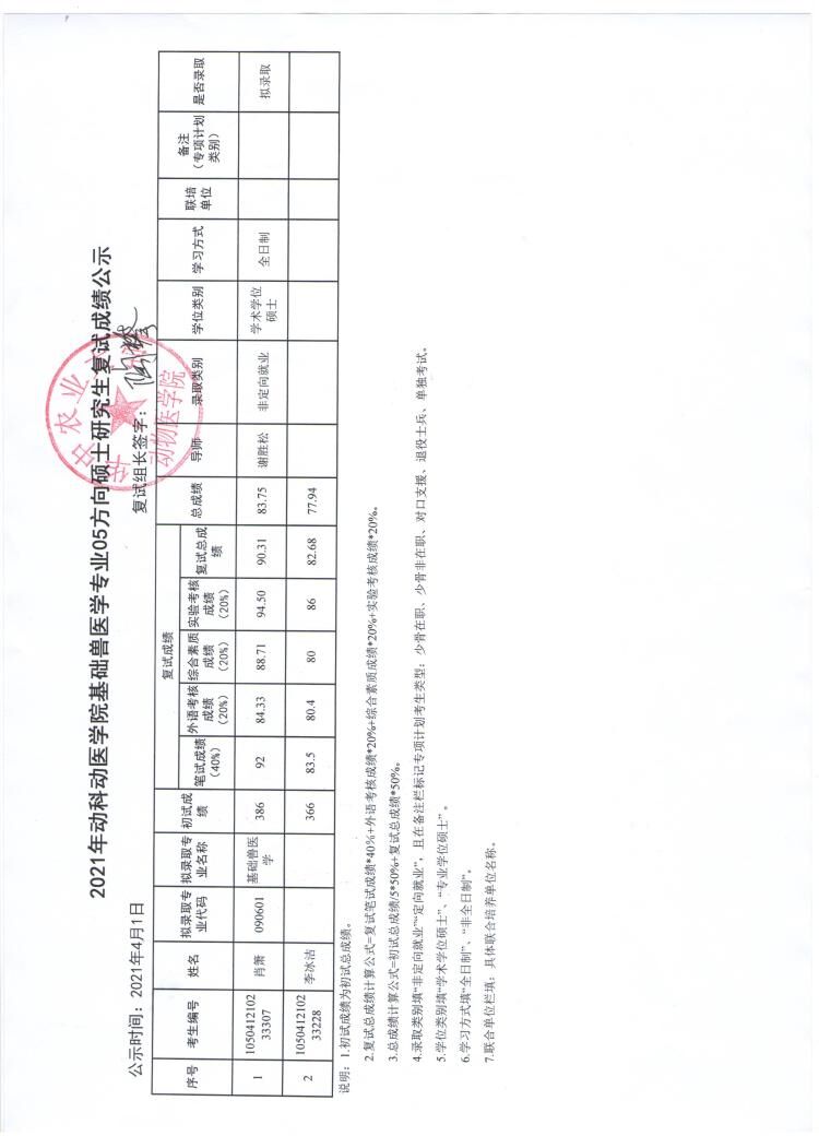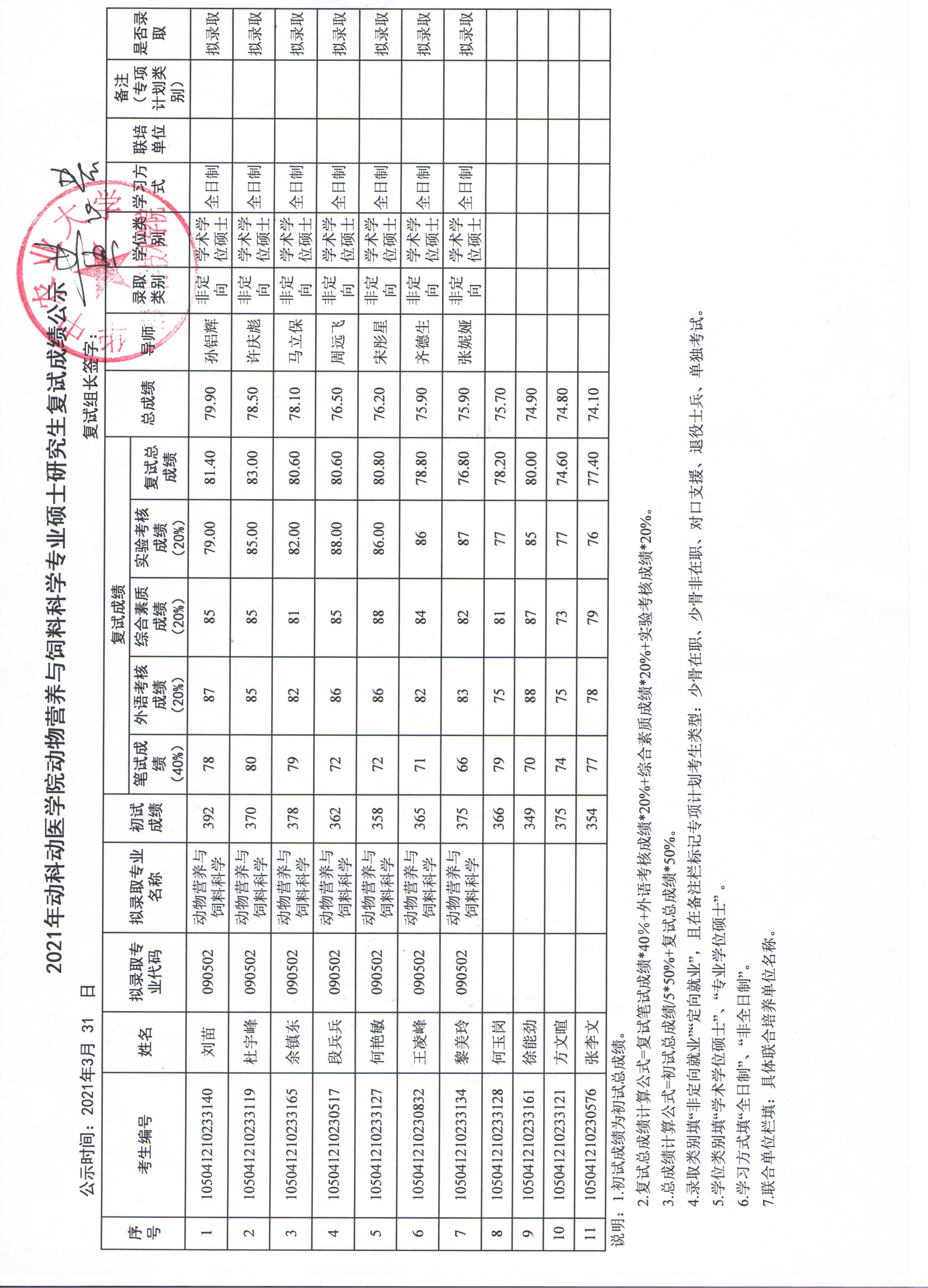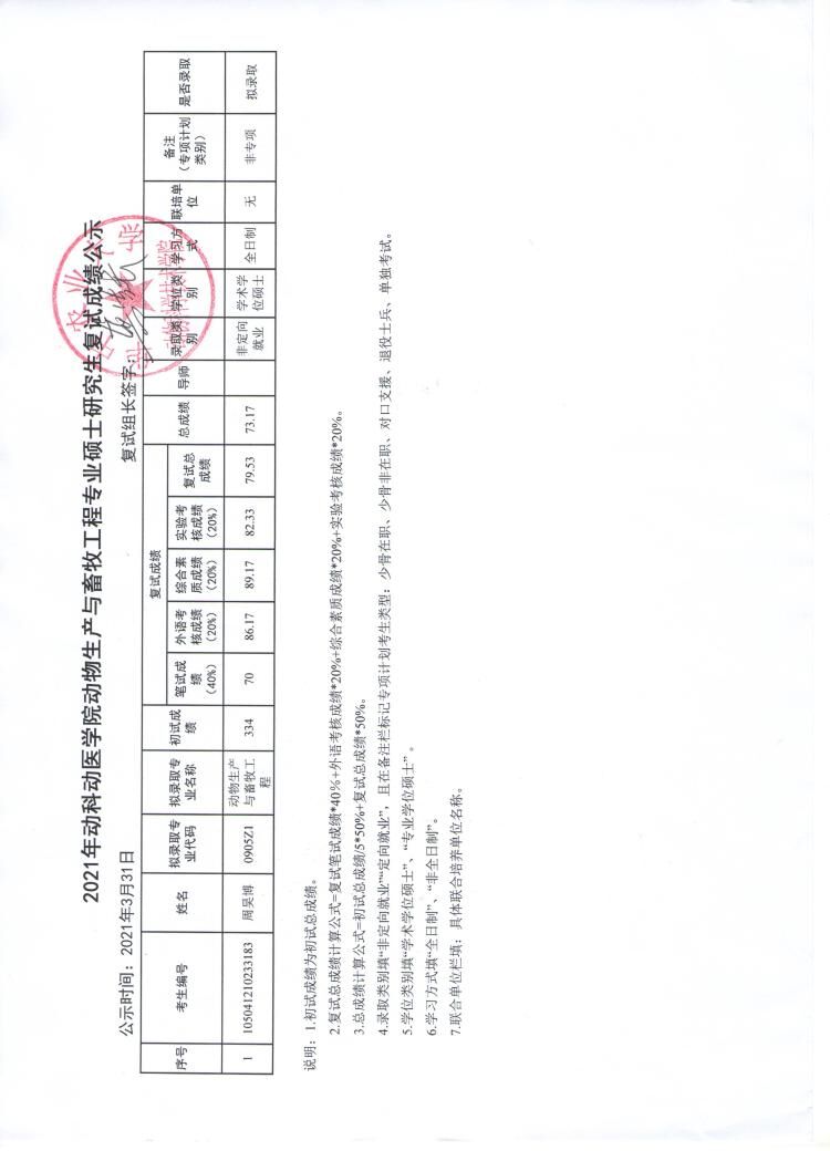 农业硕士(畜牧)专业学位调剂复试成绩公示-第二批