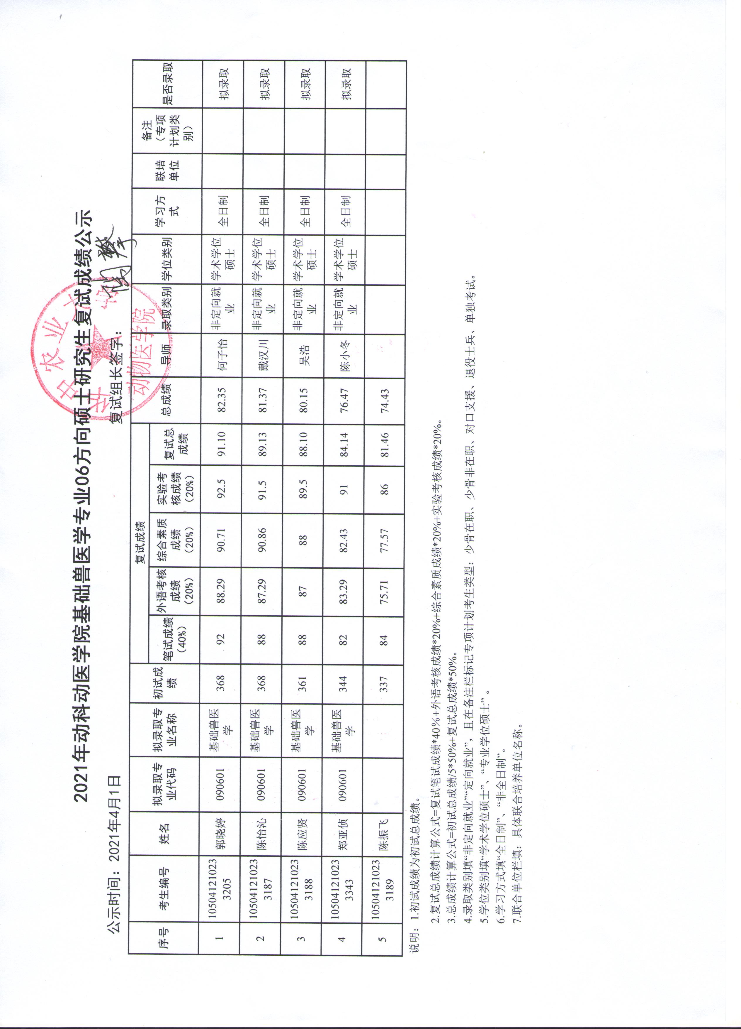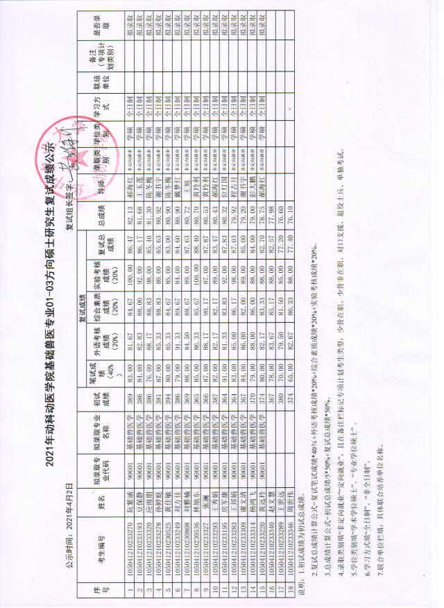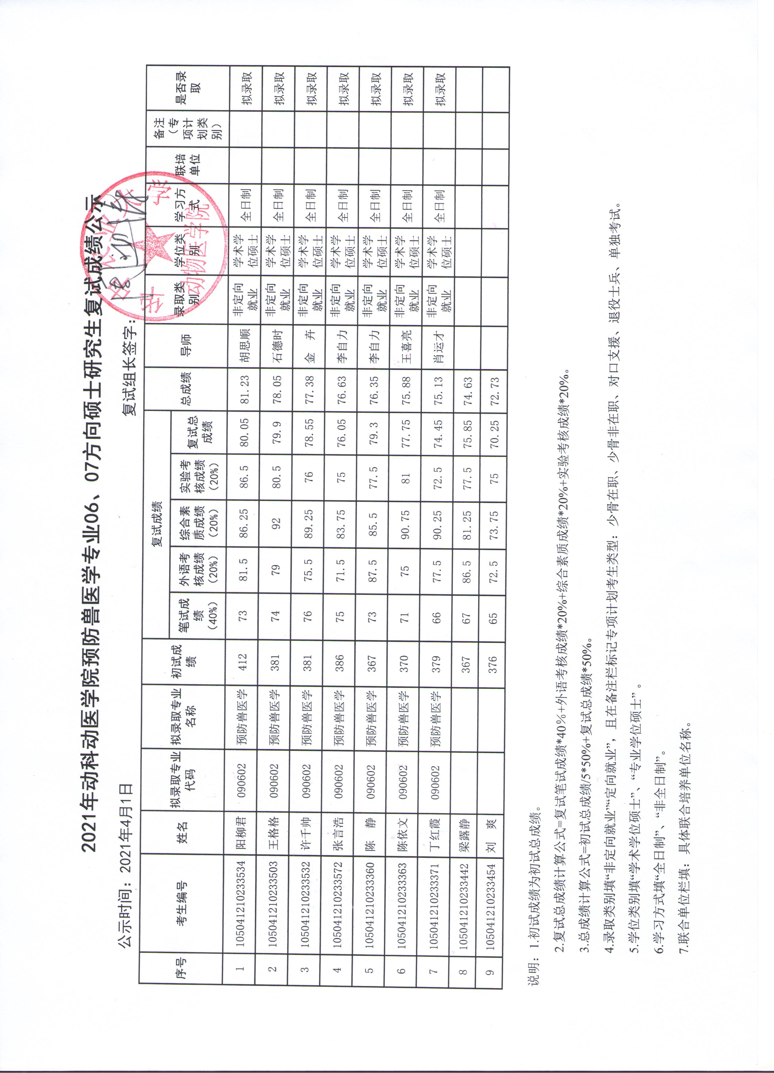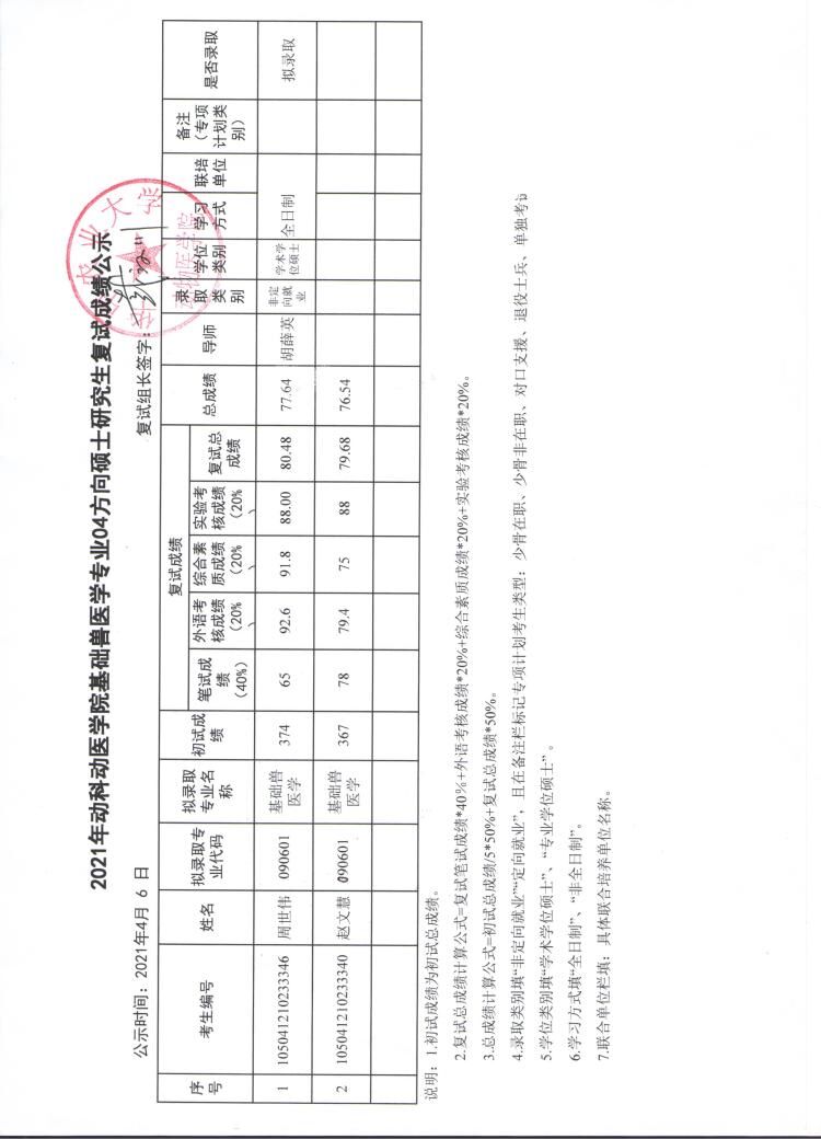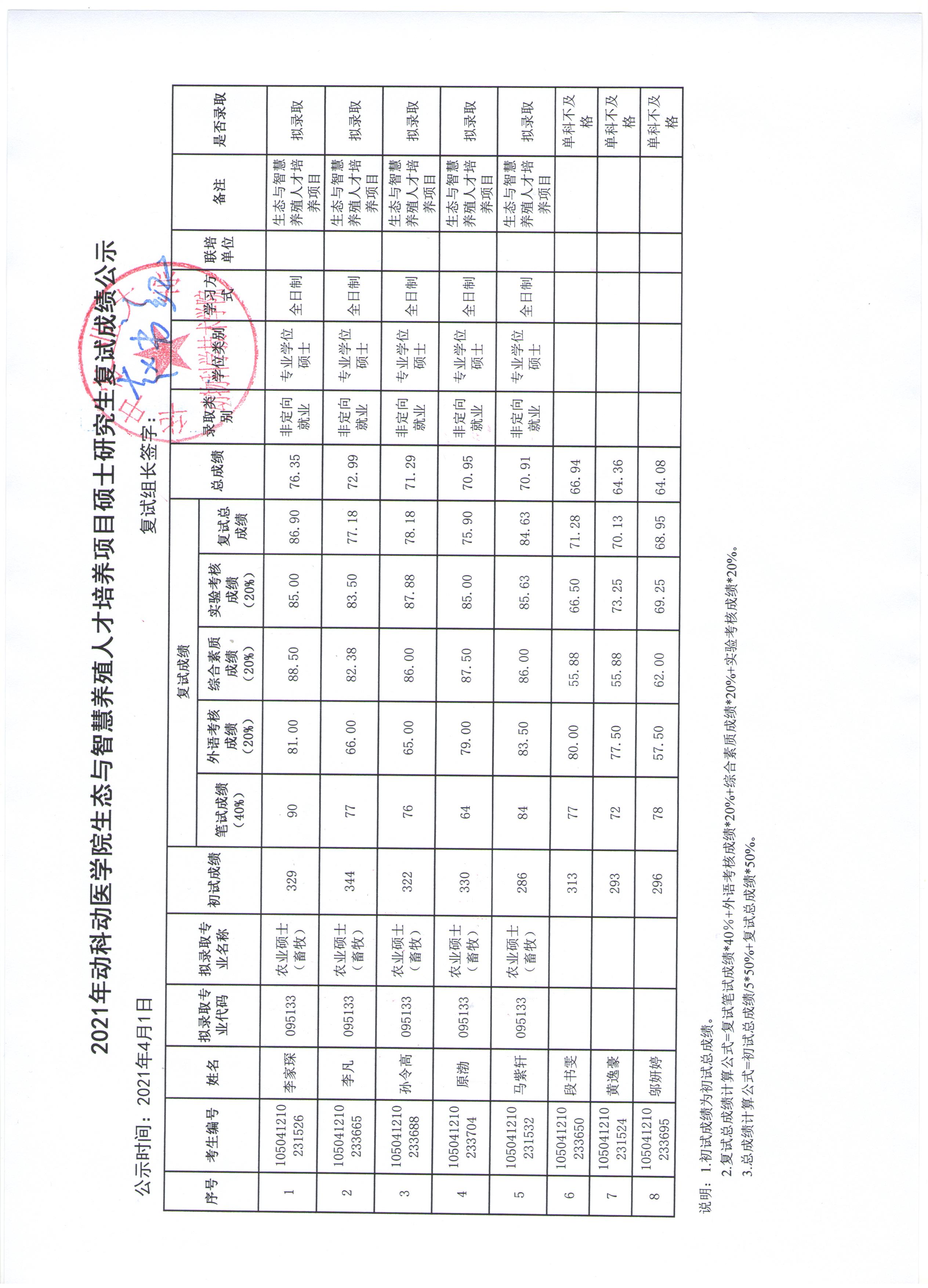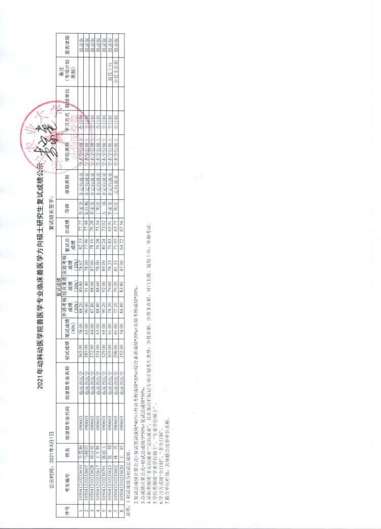 农业硕士(畜牧)专业学位调剂复试成绩公示-第一批