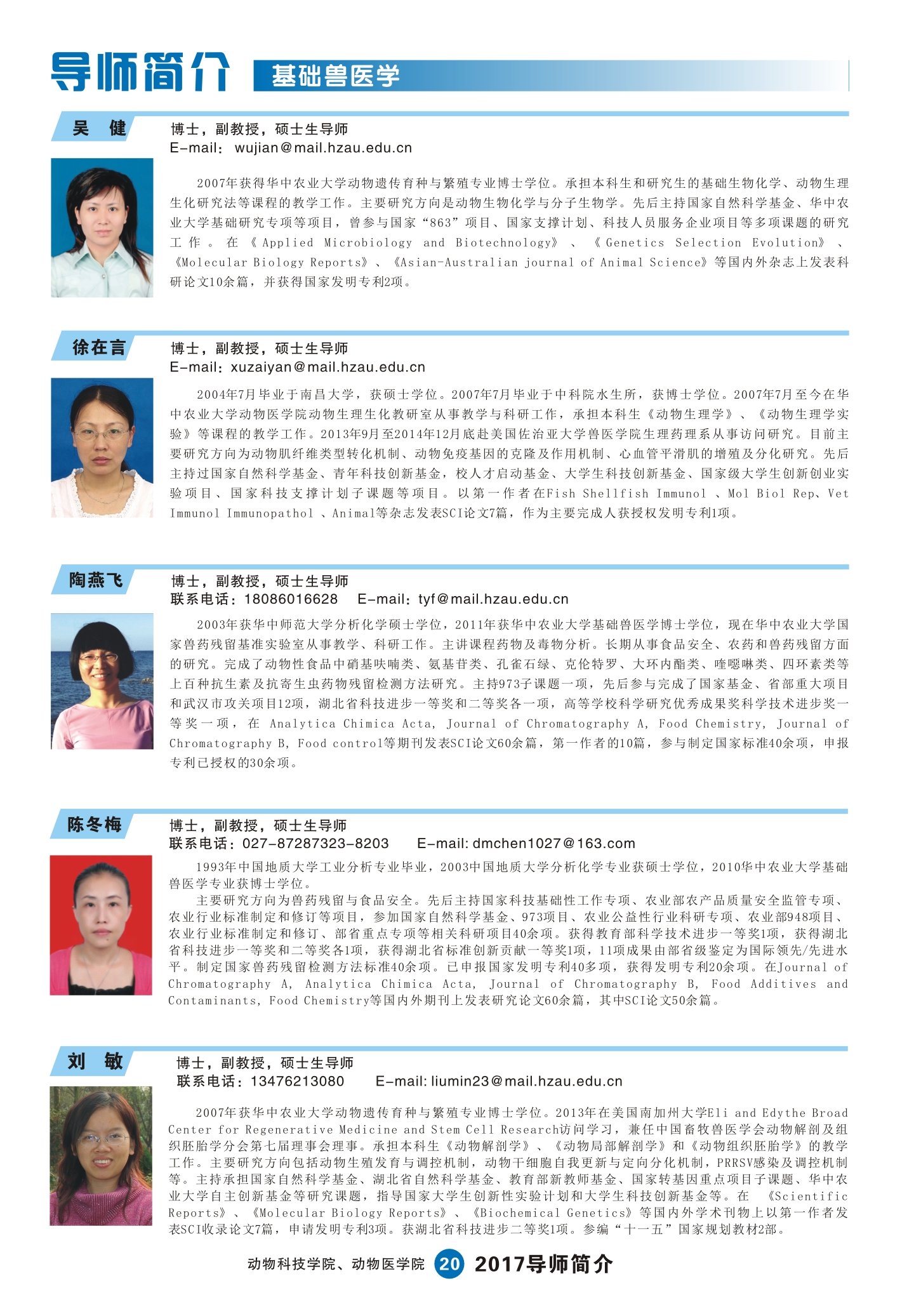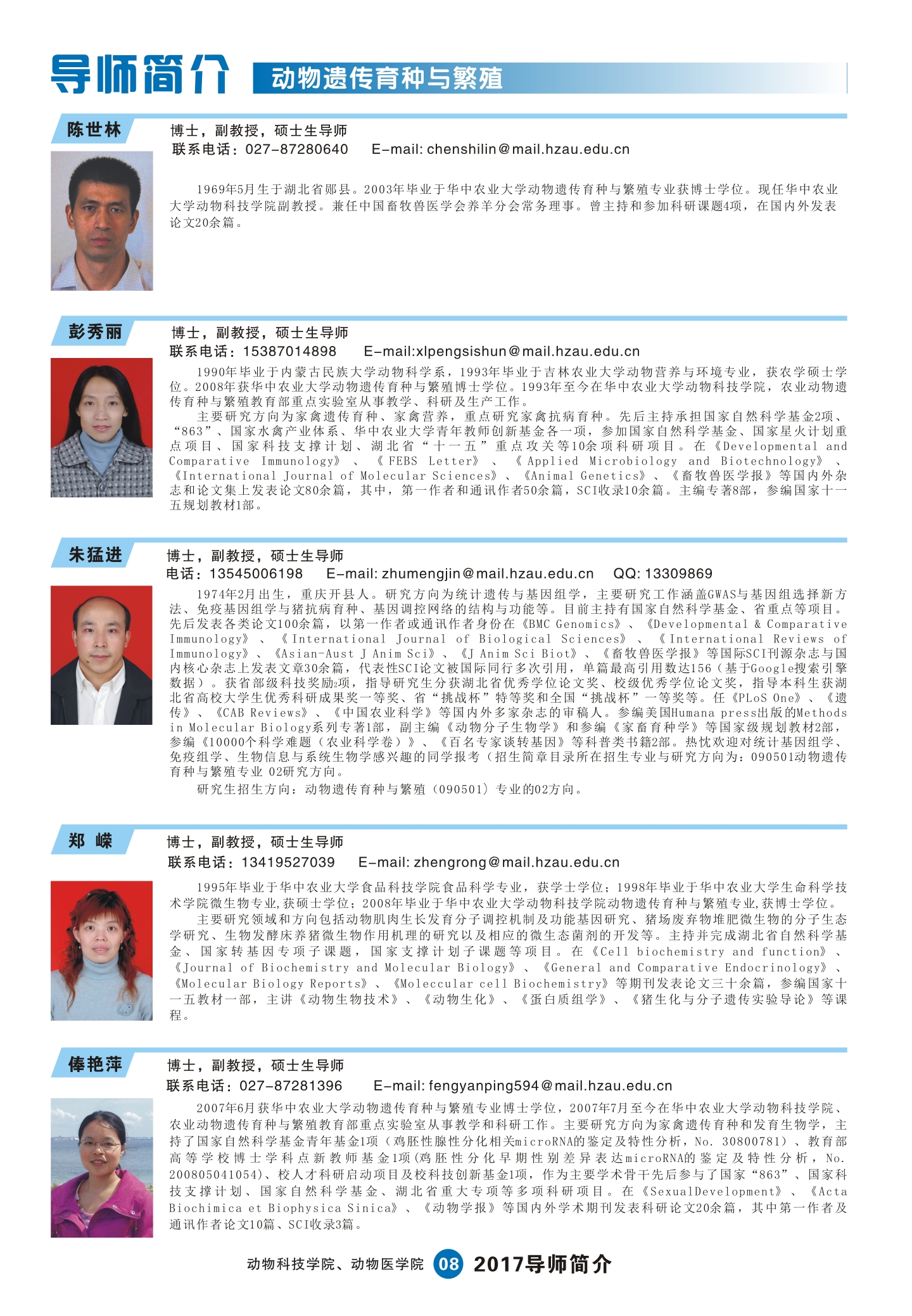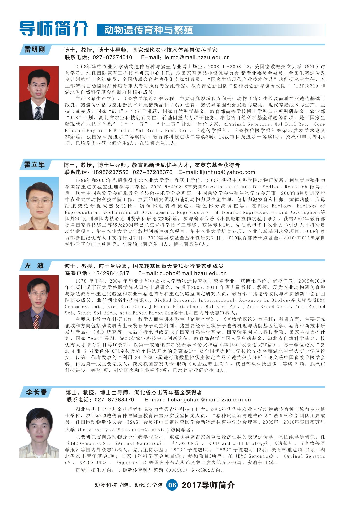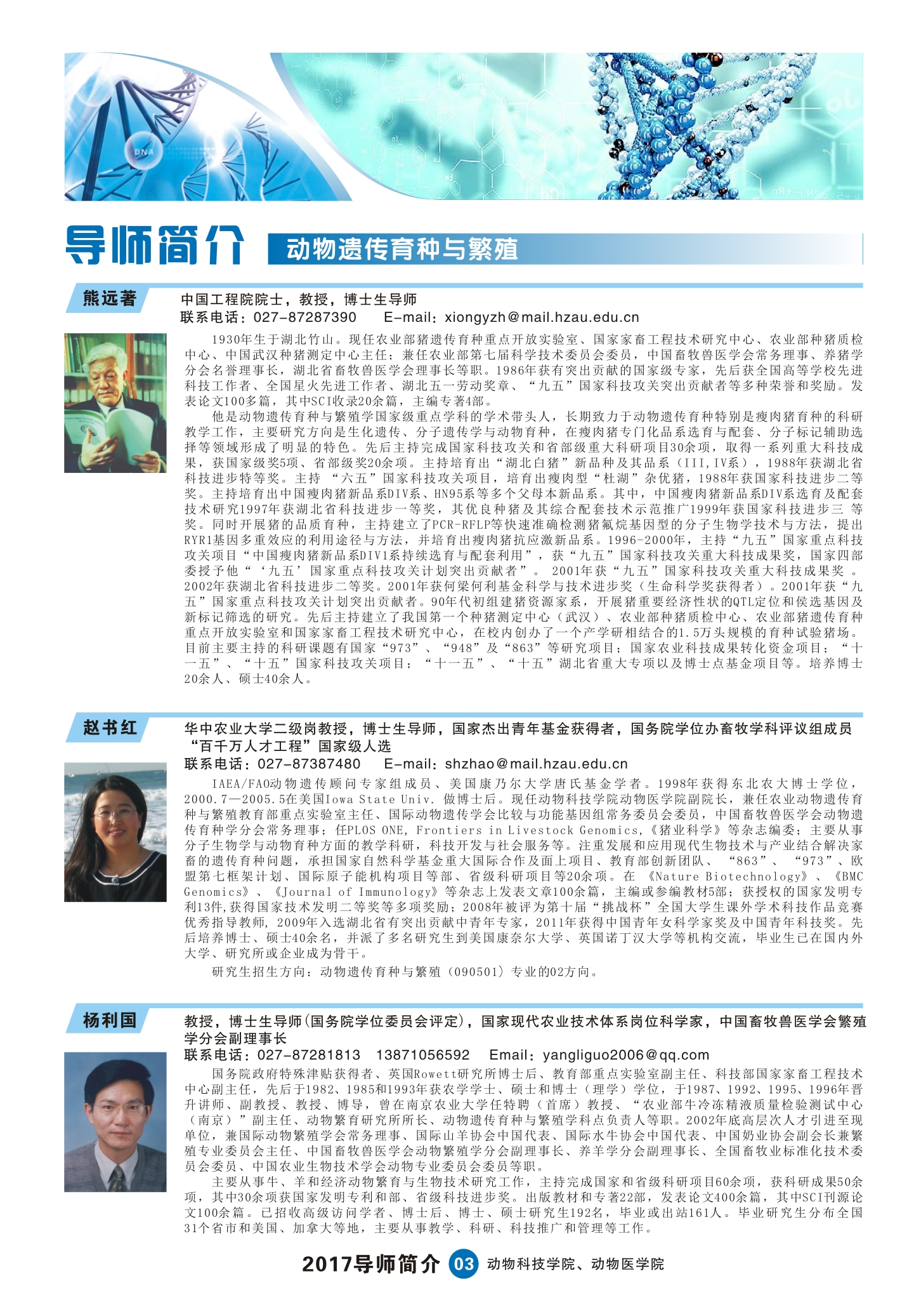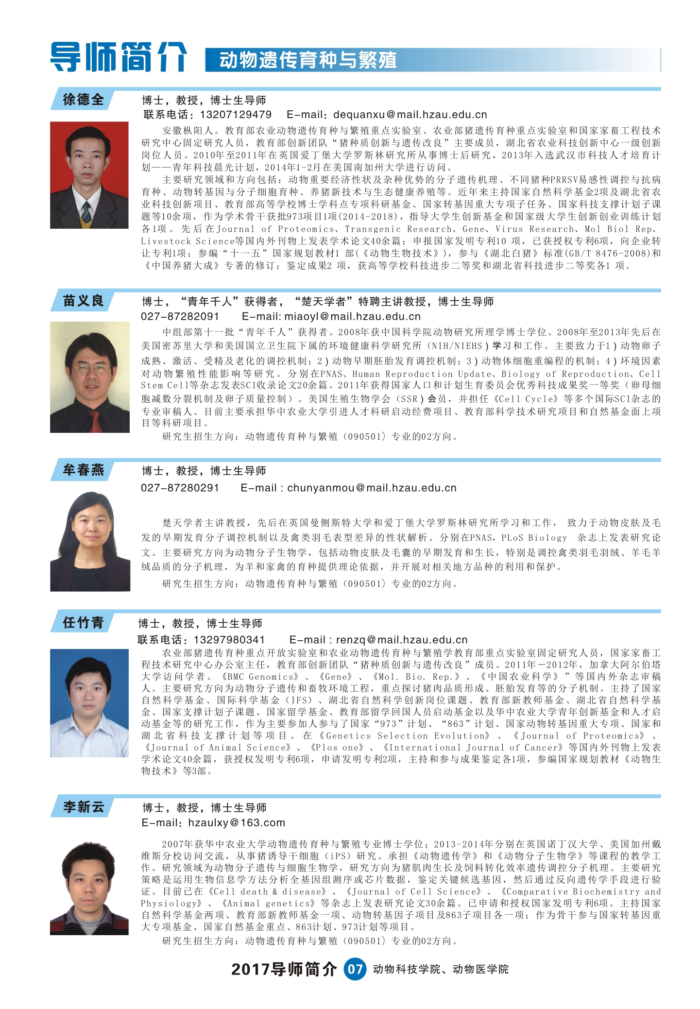 2017动科动医学院研究生导师简介手册