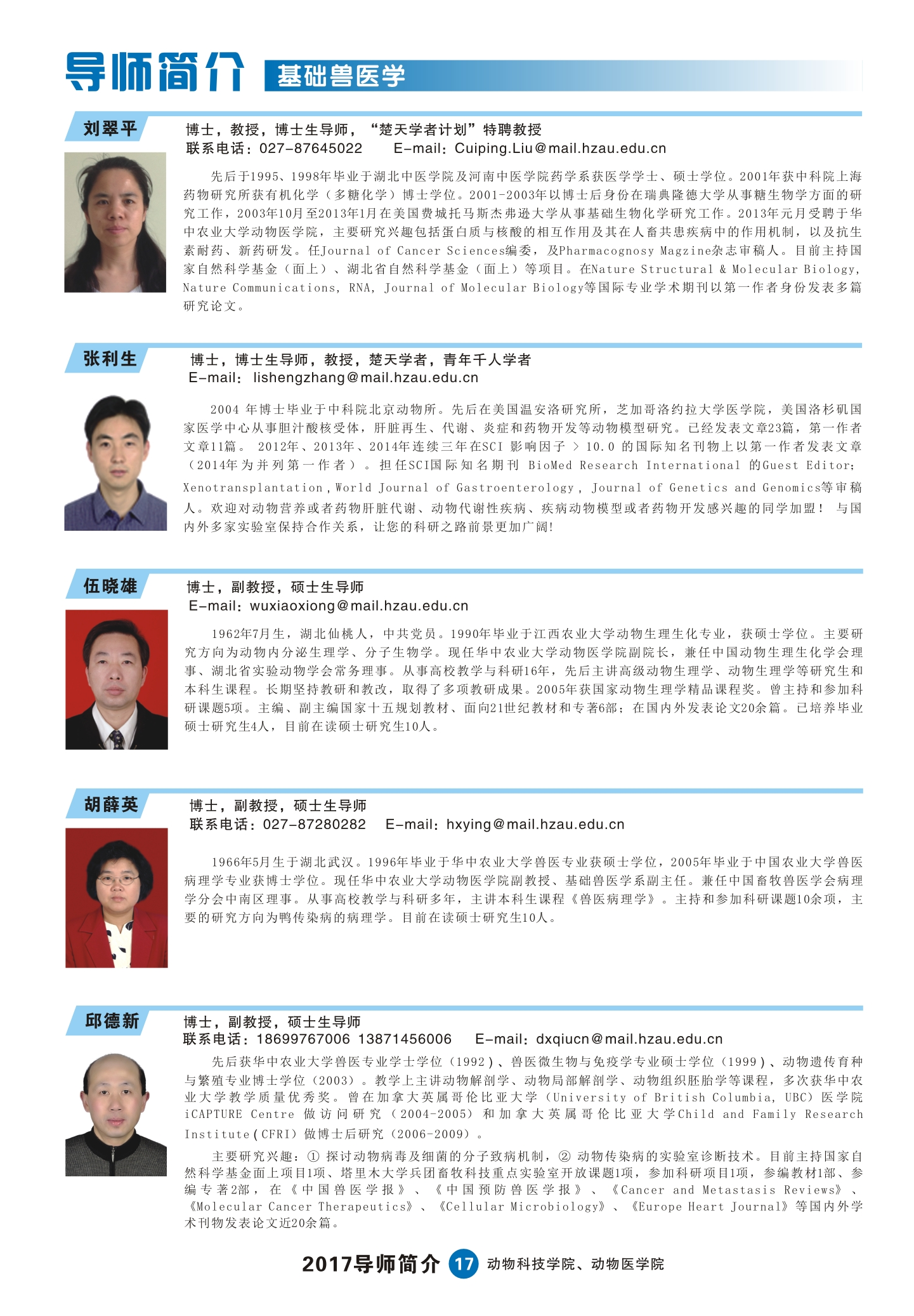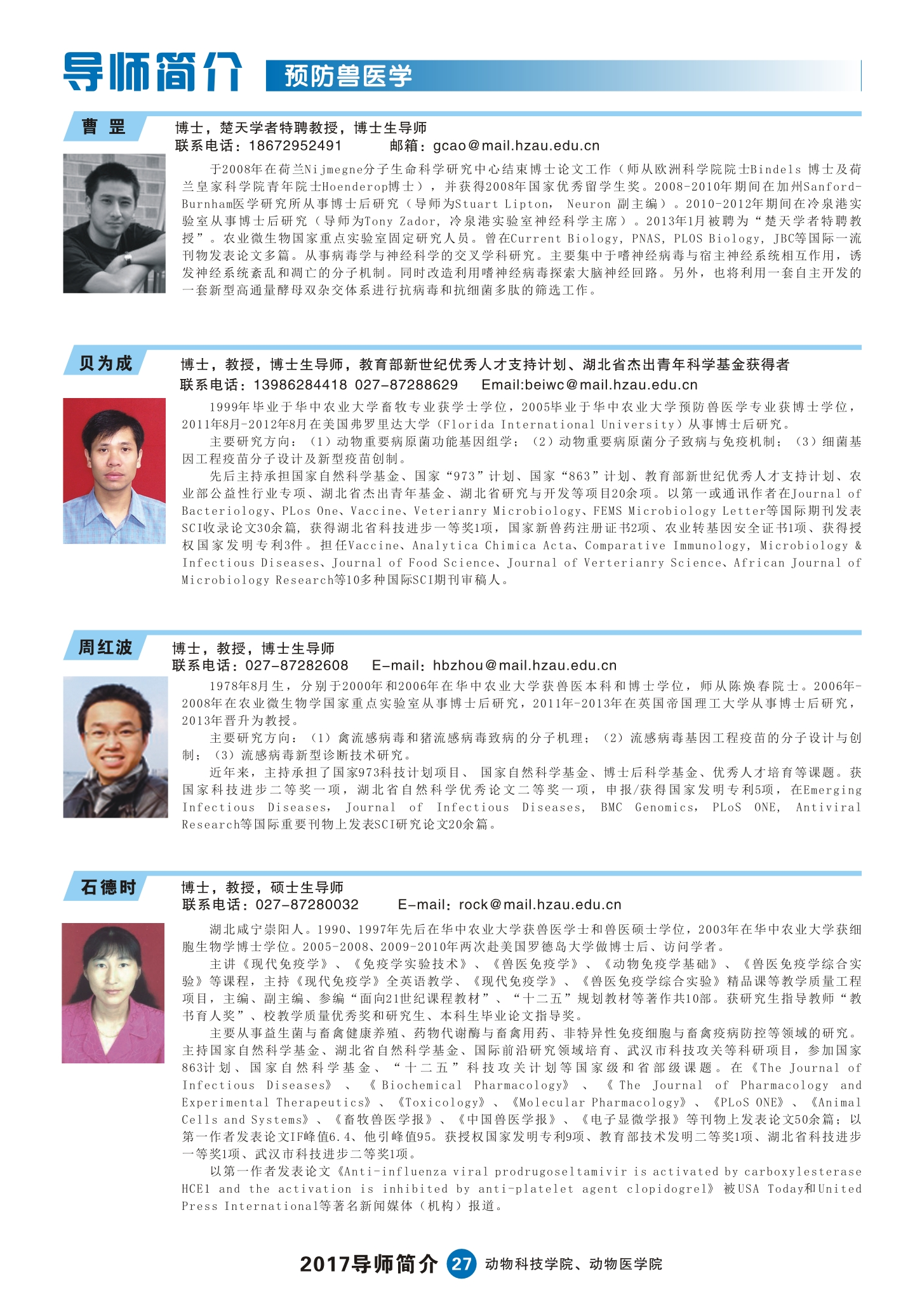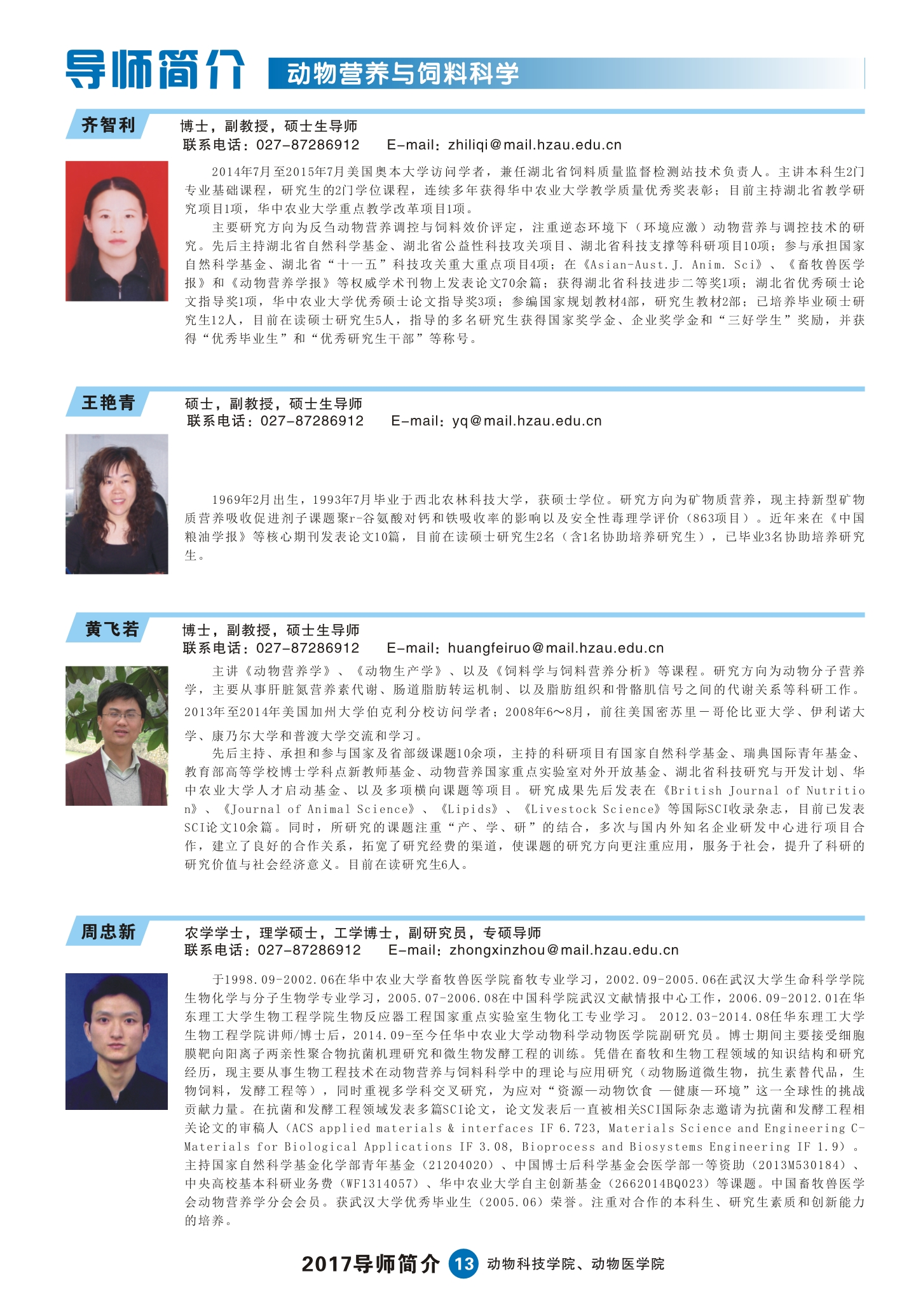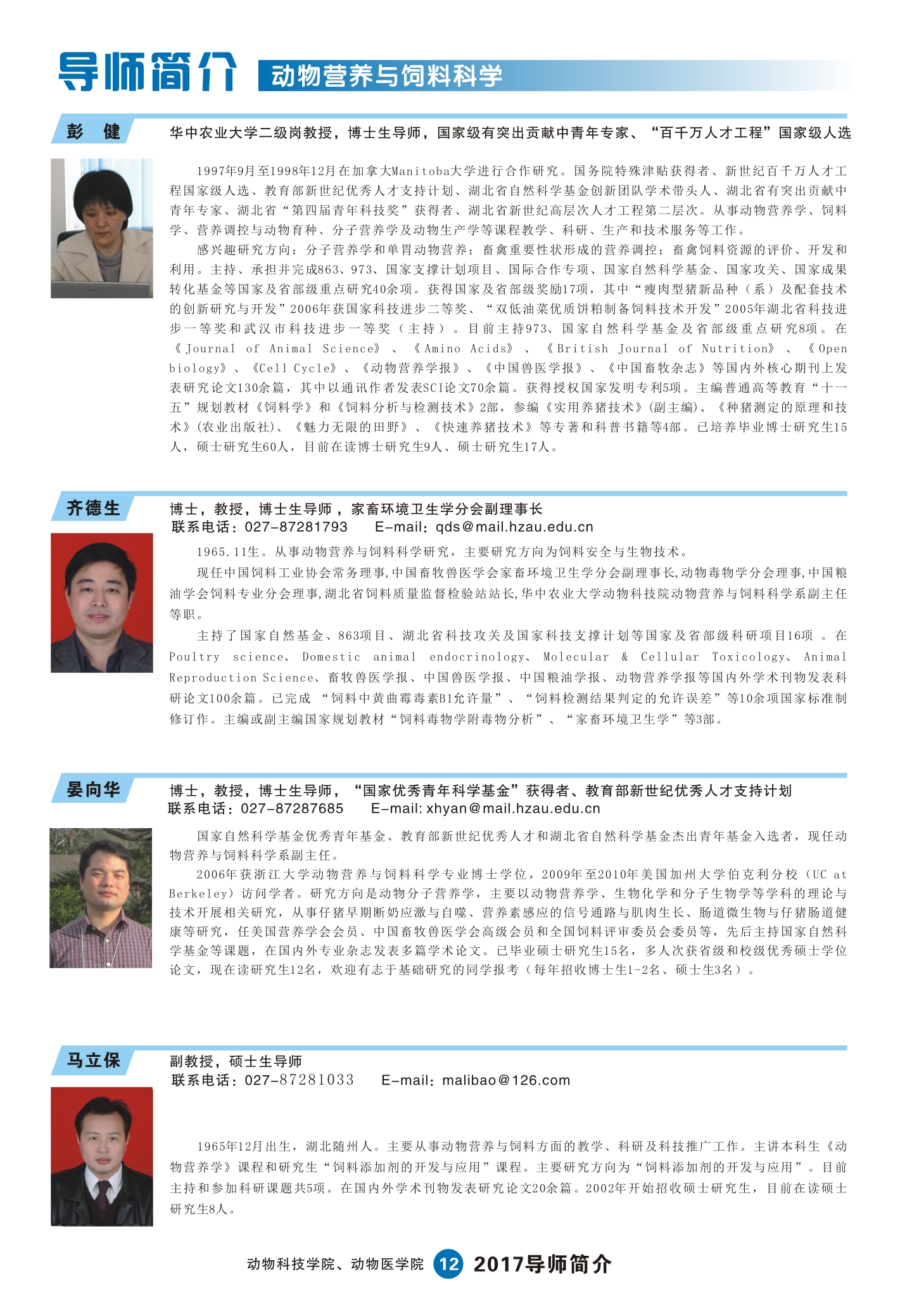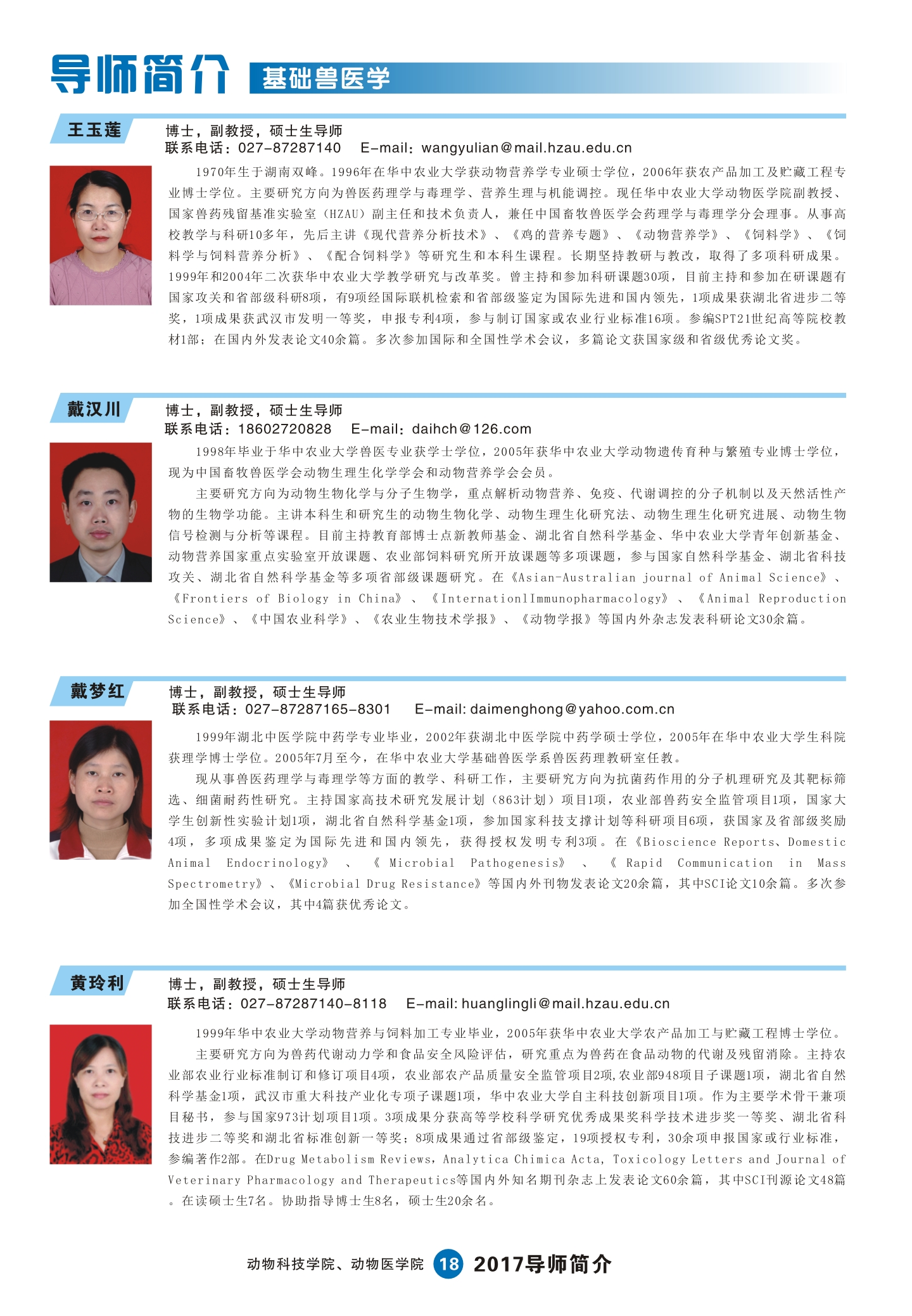 2017动科动医学院研究生导师简介手册