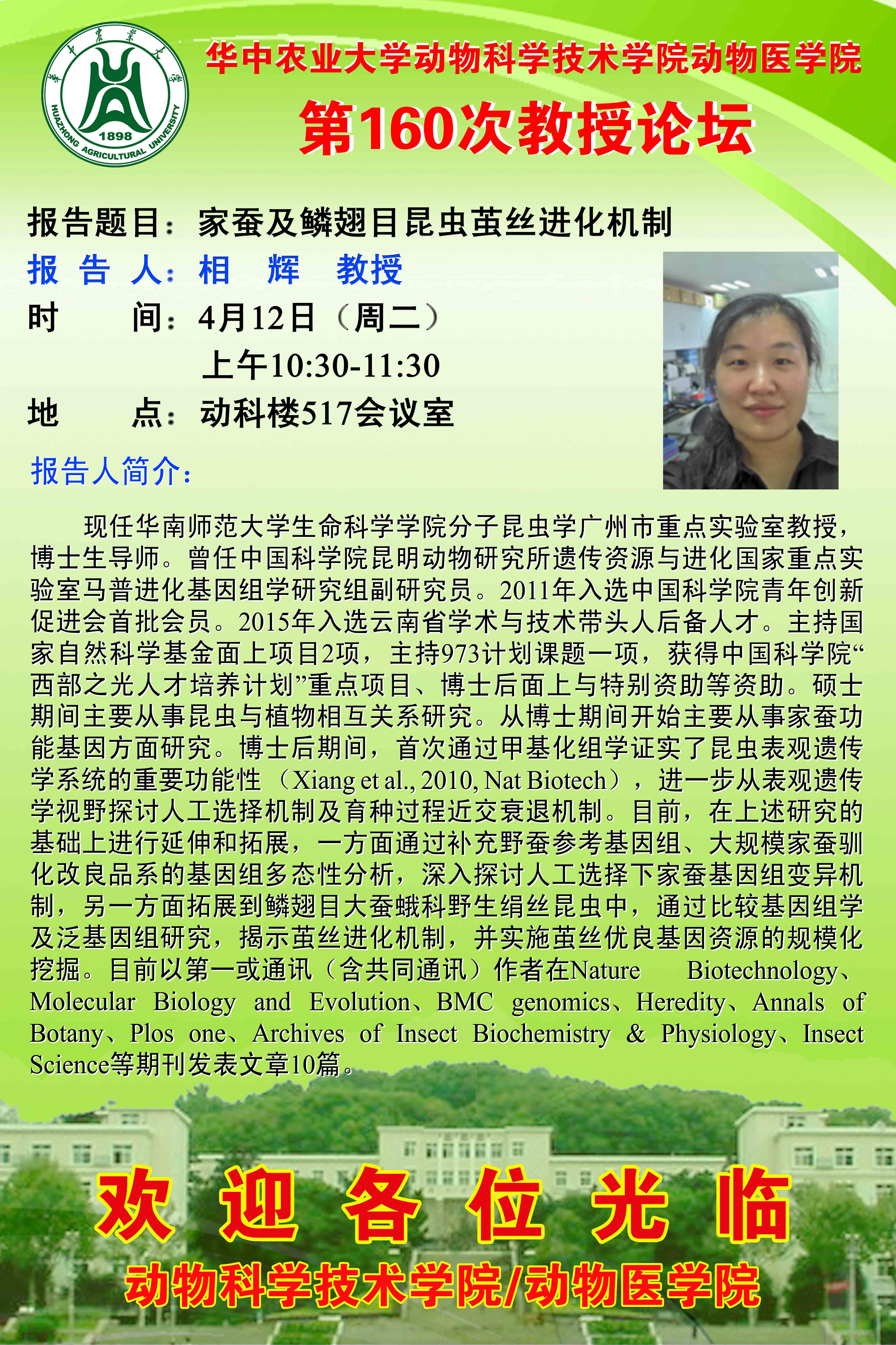 华中农业大学动科动医学院第160次教授论坛