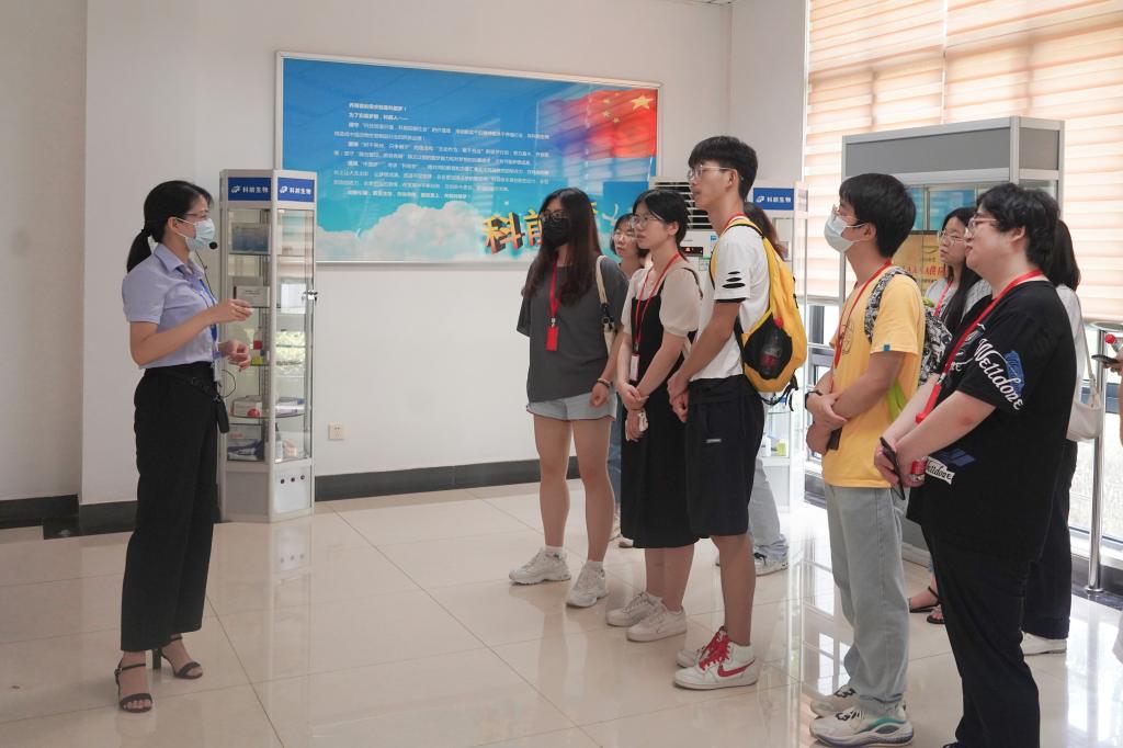 7月4日上午,实践团首先来到科前生物公司的陈列室。讲解员围绕“企业简介、发展历程、88看球直播、研发产品与专利、重点研究领域、制造与品控、营销、服务”等多方面带领实践团成员们领略科前风采。