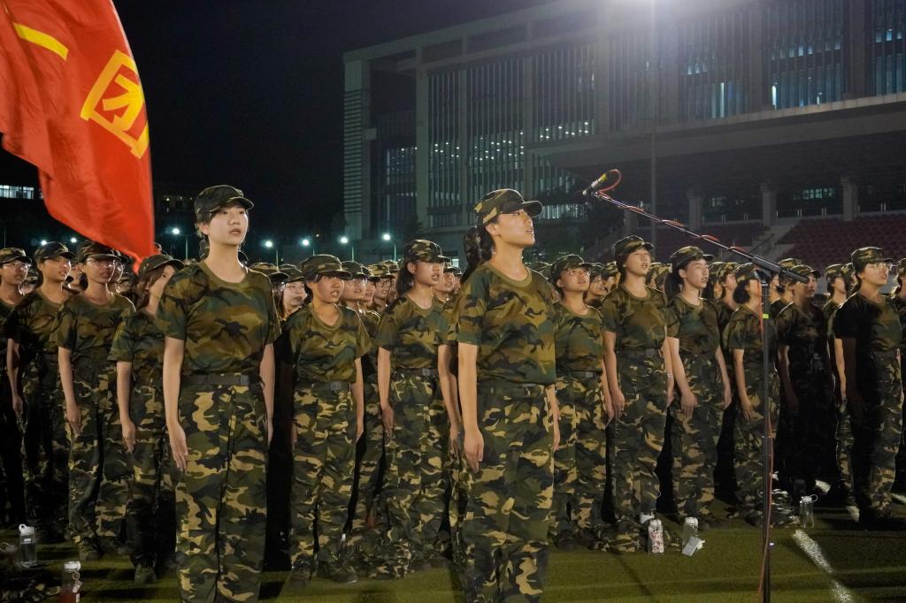 “放心吧祖国,放心吧亲人,为了胜利我要勇敢前进。”一团的女生们面带微笑,朝气蓬勃。她们清亮的歌声中饱含着对先辈捐躯报国的敬佩,对吾辈奋斗青春的自勉和对祖国美好明天的憧憬。她们用歌声向祖国母亲许下以青春建设祖国的铮铮誓言,献上繁荣昌盛、国泰民安的真挚祝福。“中华儿女多奇志,不爱红装爱武装。”一团的女生们展现了铿锵玫瑰的意志和巾帼不让须眉的气度。