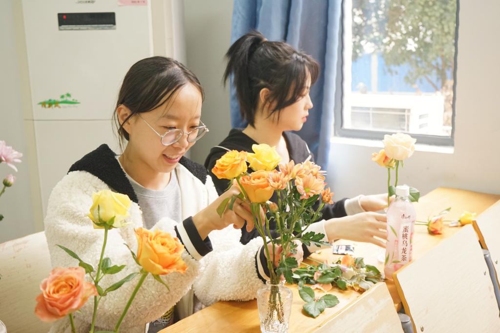 共青团委员会主办,动科动医学院女生部、信息学院女生部联合协办的“以花迎素商,以创毓巧思”手工活动于四教C109顺利开展。本次活动包括插花和手工制作两个内容,旨在用鲜花庆祖国生日,用手工制作开发奇思妙想,丰富学生的课余生活。