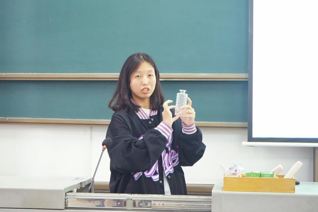 活动开始前,50个花瓶,200余枝鲜花已经在教室中准备就绪,参与学生热情高涨,活动未开始就已座无虚席。“鲜花保存不易,我们为大家准备了营养液来保证花朵盛放时间更长。”动科动医学院女生部负责人张林艳说道,她为到场同学详细介绍了插花方式、工具使用方式、后期的鲜花养护等知识。接着,学生们各自挑选喜欢的花朵,装点在自己的透明花瓶中,一时间教室四处是花朵,满室馨香。活动过程中,学生们仔细裁剪花枝,完成了一幅幅富有情趣的插花作品。值此国庆佳期,他们将最鲜艳的花朵献给祖国,表达自己的拳拳爱国之心。食安1901班叶青青表示:“在本次的活动中,我通过插花感受到了与自然的亲近,锻炼了自己的情趣。花朵娇艳,我想把这份美丽献给祖国。”