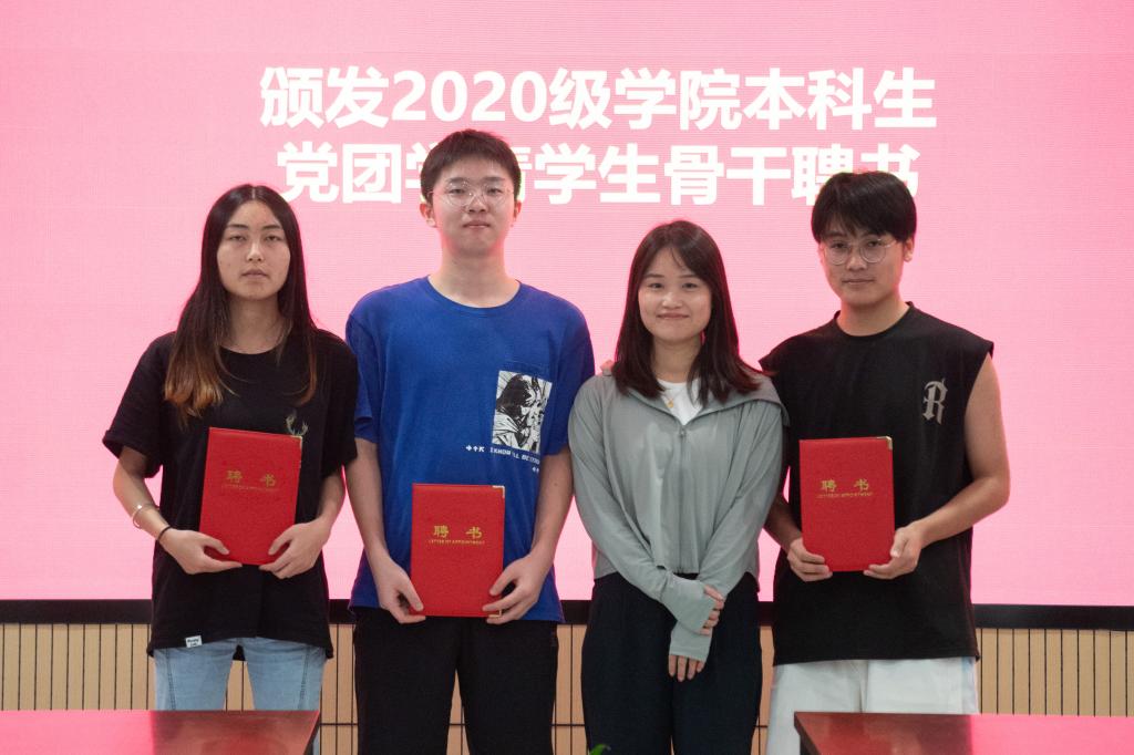 随后,谭力铭和汪昱均为2020级学院本科生党团学青学生骨干颁发聘书并进行合影留念。