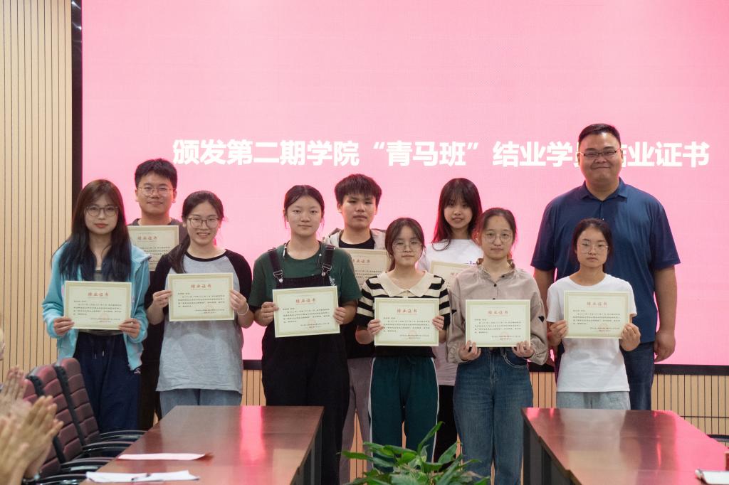 会上,王汝文向与会人员宣读第二期“青马班”结业学员名单和优秀学员名单,并由谭力铭为优秀学员颁发荣誉证书。优秀学员代表黄思雨分享自己过去一年里的学习成果,鼓励全体学员将马列主义的学习融入日常生活中,将个人价值与社会价值相统一,努力成为祖国强盛的后备军。