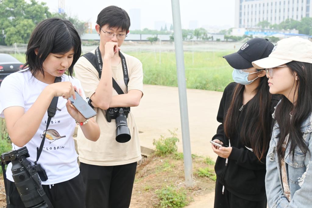 上午八时,志愿者们在二十四节气柱集结并配备望远镜。随后,在野保成员罗睿妍的带领下,志愿者们沿路深入试验田。行进中,罗睿妍详细讲解了校园内的常见鸟类的外在特征、觅食筑巢行为、迁徙走向等相关知识,并借助文献资料及相机照片辅助介绍难以辨识的鸟类。在实验田深处,志愿者们偶然遇到了同为观鸟爱好者的李翔副教授,并与李翔副教授共同探讨了校园内珍稀鸟类的踪迹。