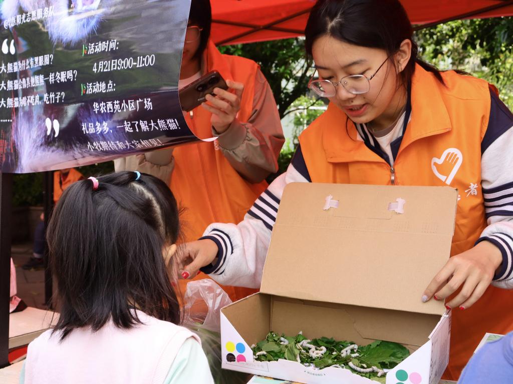 牧医阳光志愿服务队带领志愿者前往华中农业大学西苑社区,开展了以“小罐存大爱,春日送温情”为主题的熊猫科普活动。