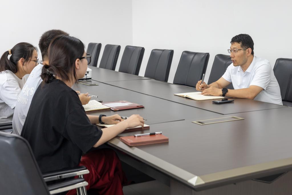 (通讯员:赵怡哲 王家怡 骆灵哲 摄影:赵怡哲)7月16日,华中农业大学动科动医学院赴河北利华药业实践团队员在三楼会议室对利华药业总经理宁振兴展开人物专访。宁振兴亲切和蔼、幽默风趣,整个访谈过程非常轻松愉快。