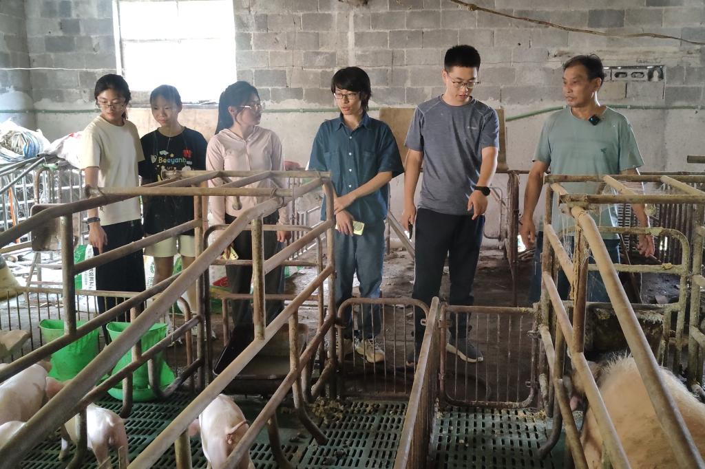 7月18日,实践团队展开对建始县安乐井村生猪养殖专业合作社的调研,重点考察华中农大在安乐井村推广的品系——鄂通“两头乌”的养殖情况。在合作社负责人张少银的带领下,团队参观了养殖区,了解猪场规模与饲养情况,并近距离观察母猪与仔猪。张少银先生表示看好鄂通“两头乌”的发展潜力,同时期望实践团队成员努力学习,提升养殖技能,以后投身基层养殖行业中去。