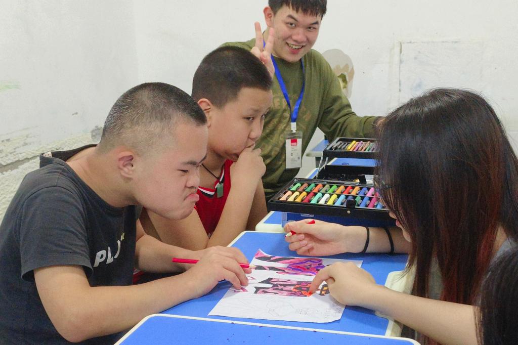 初见,他们那双充满好奇与纯真的眼睛立刻让人感受到不同寻常的气息。作为唐氏综合征患者,他们并没有被生活所束缚,反而在艺术的世界里找到舞台。彩虹班的班主任自豪地向实践团队队员们介绍:“他们画画都很棒,总是能展现出自己独到的想法。”在随后的绘画活动中,一位少年的绘画天赋引起了实践队员们的注意。面对队员的好奇询问,他小手指着画作一一介绍,那份热爱感染了在场的每一个人。