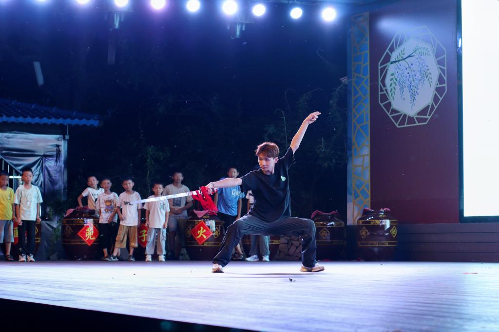 晚七时许,文艺汇演在长岭关村的青山绿水间拉开帷幕。支教队队长李林睿与队员孟芳伊携手担任主持,引领观众走进了一场充满爱与希望的视听盛宴。一首歌曲《稻香》,让大家感受到了这片土地的温暖与淳朴,爱的旋律在稻田中奏响;一支舞蹈《向快乐出发》,将孩子们洋溢的青春气息洒遍长岭关村,“快乐”的人生宗旨在孩子们心中萌芽;还有充满了夏日阳光和童年记忆的《小城夏天》、承载爱与梦想的《离别开出花》、贯穿东方英雄气魄的精彩武术表演,以及尽兴之时长岭关村民们登台的歌喉一展……