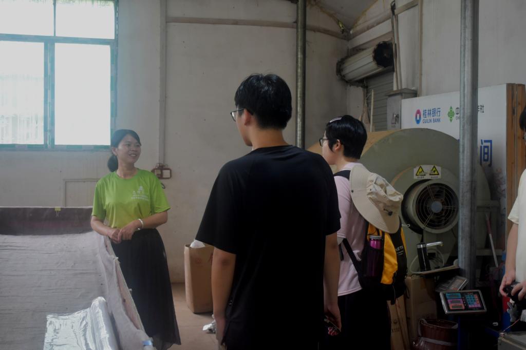 到达布央村,当地茶农莫景凡首先带领实践团队成员参观自己创办的制茶厂,她从萎凋、杀青、揉捻、干燥等茶叶制作流程为团队成员们介绍各种机器的功能用途。