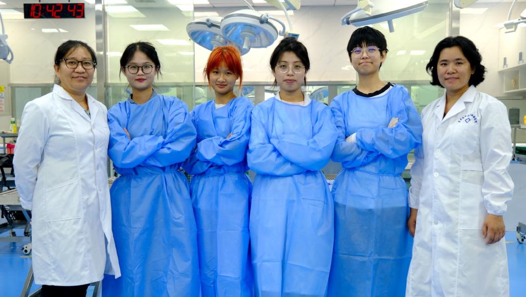 实操训练方面,学院提供了顶级的实验设备、充足的实践材料以及舒适的学习环境,全力支持参赛队伍。队员们在兔胃手术的操作中,轮流担任不同角色,通过反复磨合提升团队协作效率。术后,他们积极复盘,细致分析操作中的失误与改进空间。指导教师积极鼓励队员进行不同的外科手术实操,切实从训练中提高自身的临床实践能力。此外,血涂片制作和徒手打结等技能也在老师的鼓励与指导下日益精进。