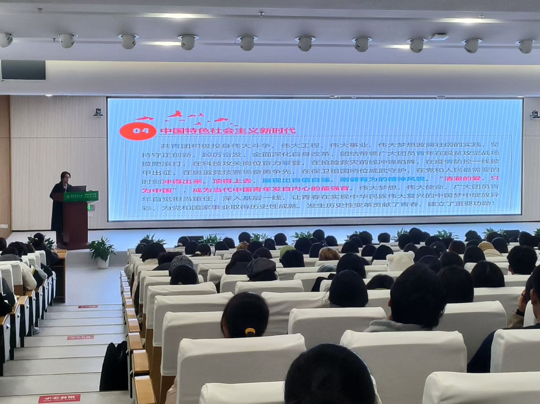 第五次新生团课在第四综合楼F101成功召开。本次团课学习主题为《先进典型与模范人物事迹》,由工学院辅导员李萌主讲。