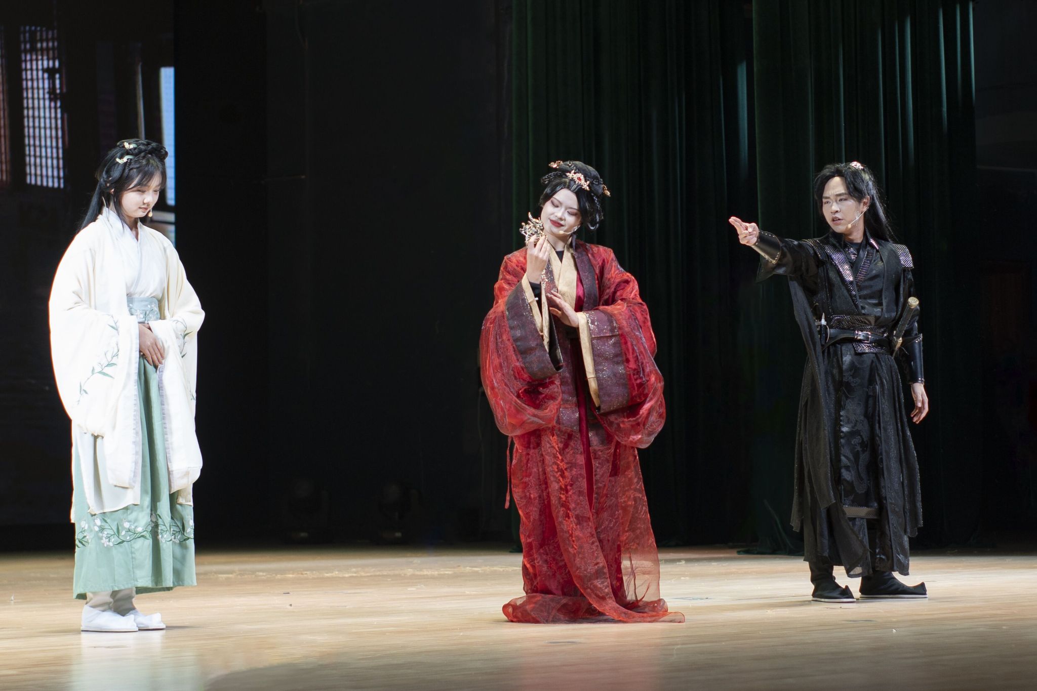 此次动科动医学院代表队的参赛话剧《我们的荆轲》取材于《史记·刺客列传》,节选 “受命”“杀姬”“壮别”三段,以现代视角再现历史故事,新鲜而犀利地重新解读了“荆轲刺秦” 这一经典。剧中,侠客荆轲受命刺杀秦王,信心缺乏,内心挣扎。在太子丹的安排下,荆轲与美人燕姬相处,与其演习刺秦的经过。二人一问一答之间,表现出荆轲内心深处对自我价值的客观审视。“风萧萧兮易水寒,壮士一去兮不复还”,在众人的送别声中,荆轲扯紧头巾,坚定地去完成他的使命。刘子萧饰演的荆轲,以慷慨激昂的台词展现对自我和对所谓人生价值——谋名和赢利的重新 判定和审视;陆梓迅饰演的燕姬,言辞铿锵,步步紧逼,与荆轲互为镜像,层层解构“刺秦”的目的,揭开荆轲“刺秦”的真实内心。“在舞台的华彩落幕,我与老师们并肩而立。过去两个月的训练如电影般在脑海中快速闪过,那些不断重复的动作与磨合,终于在此刻凝结成舞台上这一场完美的呈现。无论结果如何,所有的付出都已化作珍贵的回忆,我将用心去铭记与珍藏。” 谈及参演本次话剧的感悟与收获,动医2406班畅炯锞感慨地说道。