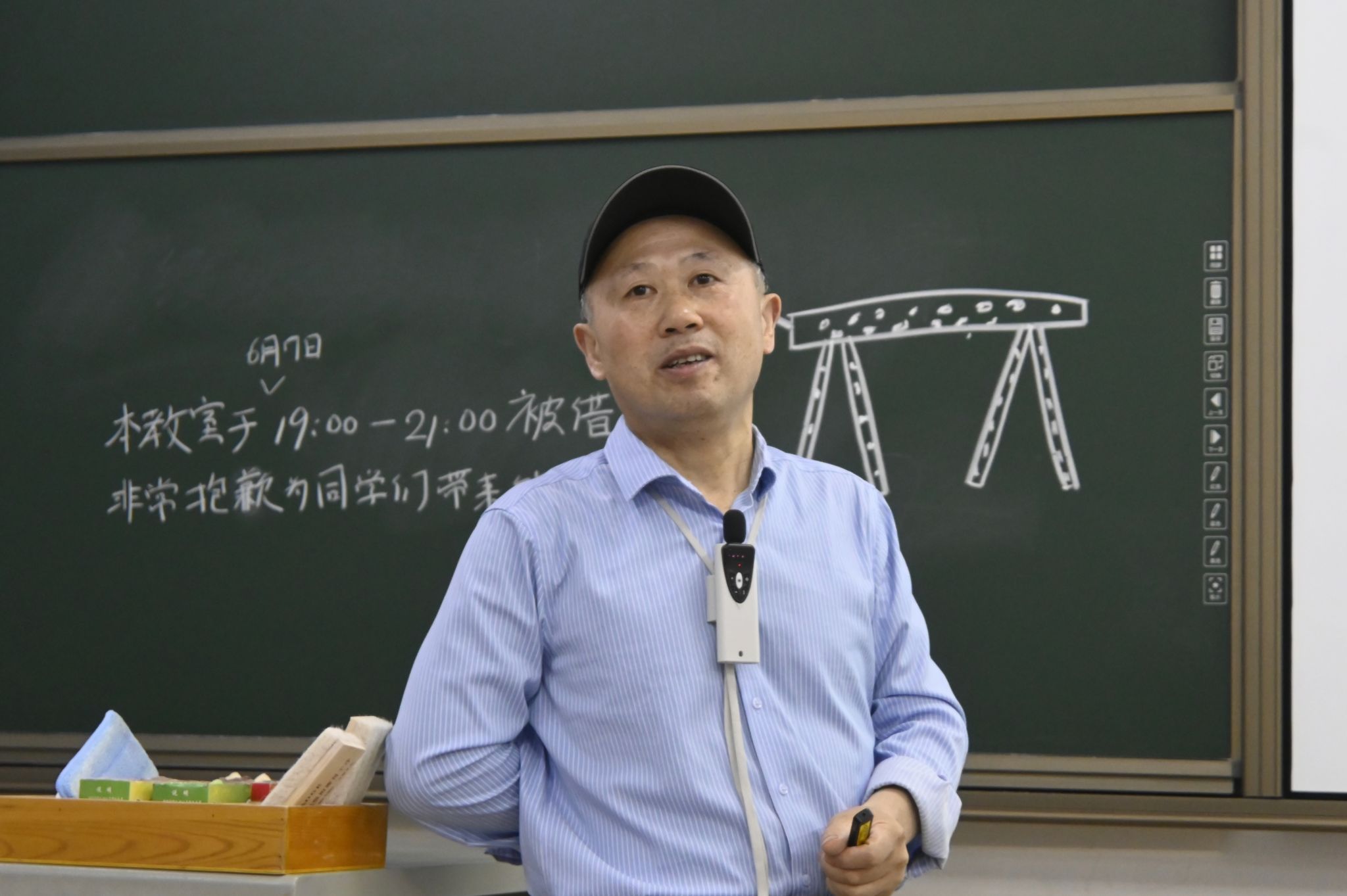 6月7日晚,动科动医学院基础兽医系教授邱德新在四教C110教室为参赛小组进行赛前培训。他首先整体性介绍了牛以及马的全身骨骼并总结了骨骼拼装大赛中“前后不分”“左右混淆”“上下颠倒”三类易犯错误。随后,他结合课件和实物,从躯干骨、四肢骨、头骨三个部分展开详细讲解,带领同学们辨析厘清各种骨骼。对于比赛中具体技巧,邱德新总结到:“重要的是要牢记椎体、肋骨等的结构和摆放方法,同时注意识别各类骨的上下端和左右侧。”