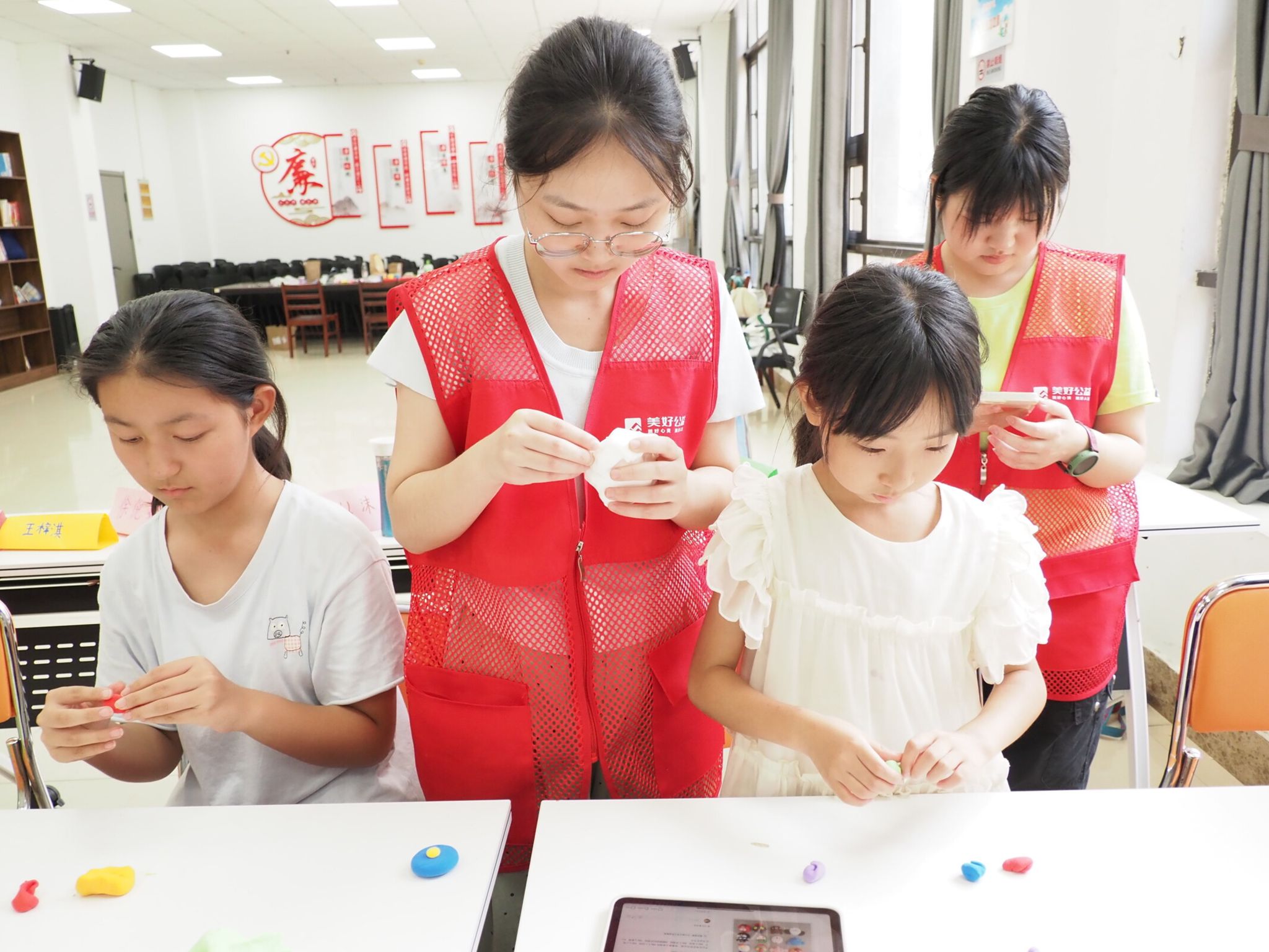 赴武汉市恒大社区暑期实践团于湖北省武汉市蔡甸区恒大社区党员群众服务中心开展“红色精神”主题教育与“巧手筑梦”沙瓶画、手工粘土制作活动。本次活动旨在增强社区青少年红色意识,培养青少年自主创新能力。