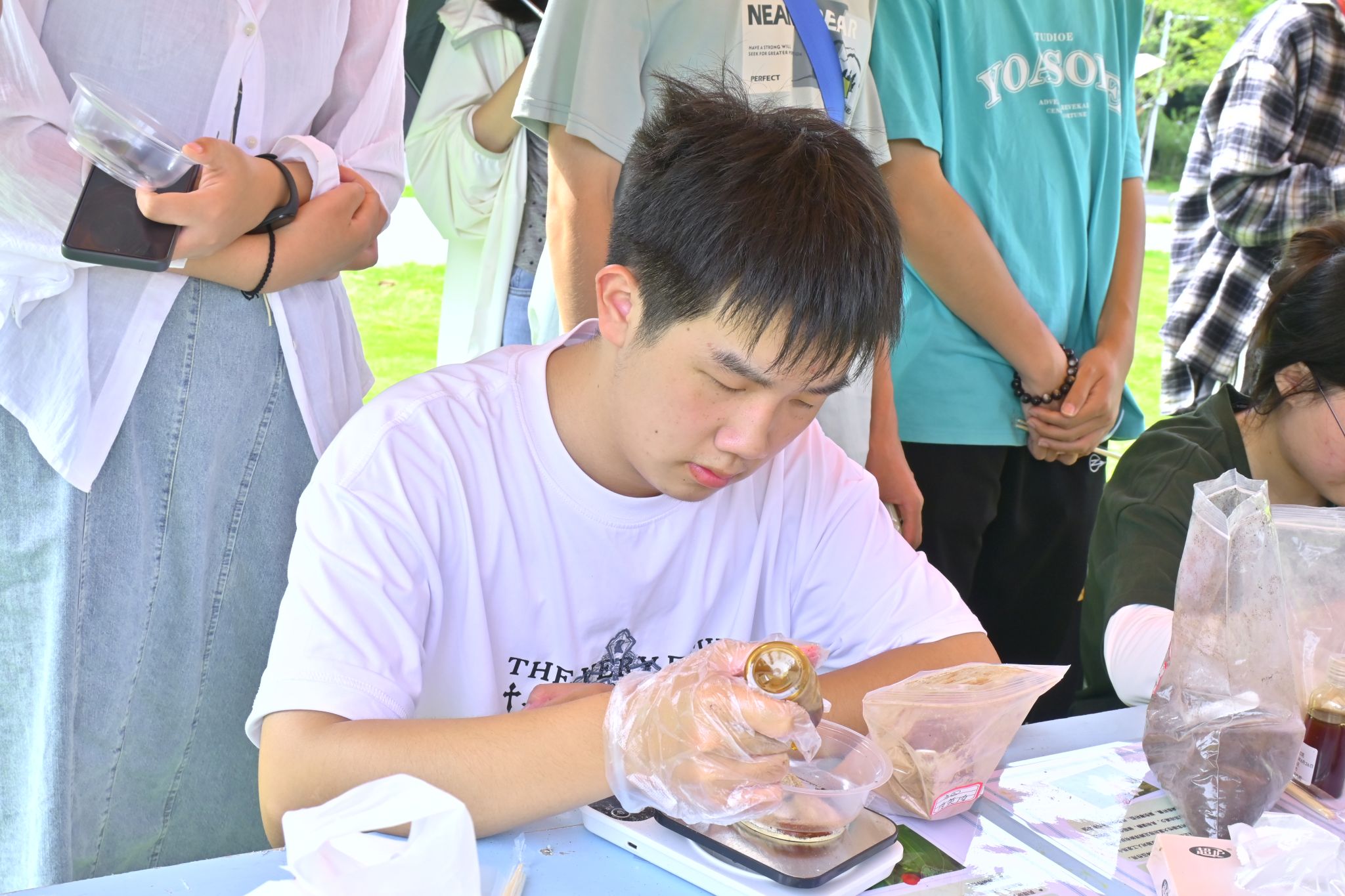 活动现场气氛热烈,吸引众多新生参与。长桌上,熟地黄、山药、山茱萸、茯苓、蜂蜜、牡丹皮等中药材按类别有序摆放,每种药材旁均附有介绍卡片,详细说明了其名称、性味与功效等。同学们围站桌前,将预先研磨好的药粉按配方精准称重、混合,再加入适量蜂蜜作为黏合剂,反复搅拌、揉搓成药粉团,最后将药粉团分成小块,揉制成一颗颗形态规整的六味地黄丸。整个过程中,同学们专心致志,细致把控每一道工序。