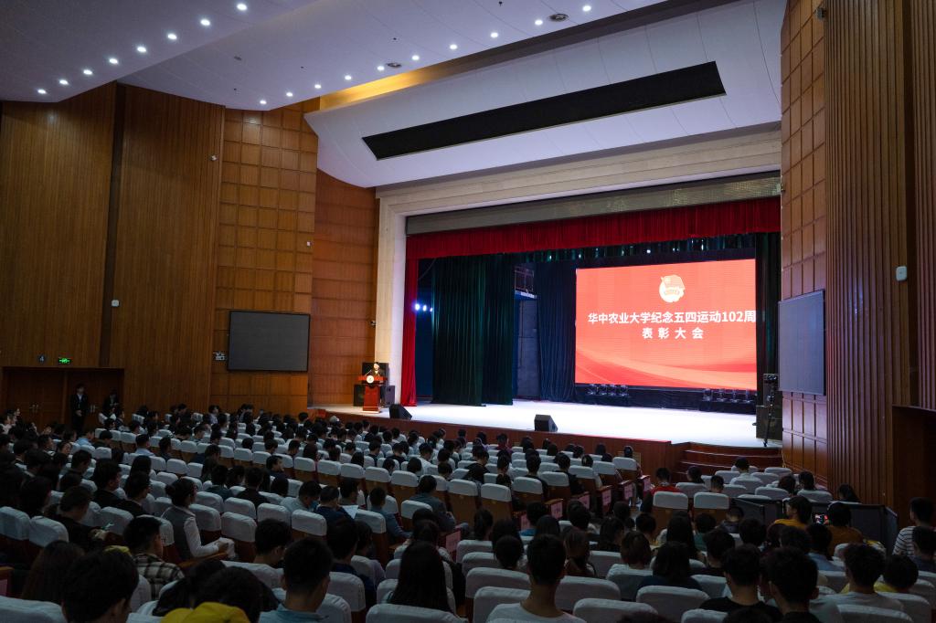 (通讯员:杜知航 摄影:杨佳渝 王仲凯)4月29日晚,华中农业大学纪念五四运动102周年表彰大会在大学生活动中心剧场举行,校党委书记高翅,相关党政管理服务部门负责人,各学院师生代表共近千人参加活动。