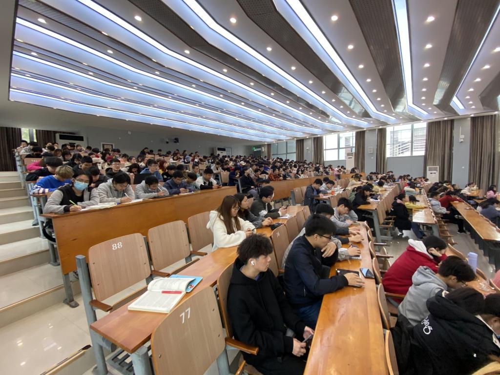 在三教S1报告厅召开2020-2021学年第2学期2019级本科生第一次年级大会,会议由辅导员谭力铭主持,2019级本科生参加会议。