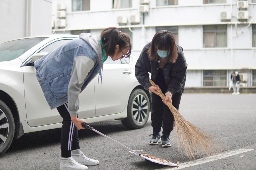 “能为学校绿色校园建设做一份贡献,感到挺自豪的。”动科2104班志愿者祝敏如是说。青年师生志愿者从博园食堂出发,在博园各宿舍区扫落叶、除杂草、拾垃圾。期间虽然偶有小雨,但志愿者们热情不减,没有因天气原因而影响打扫工作。
