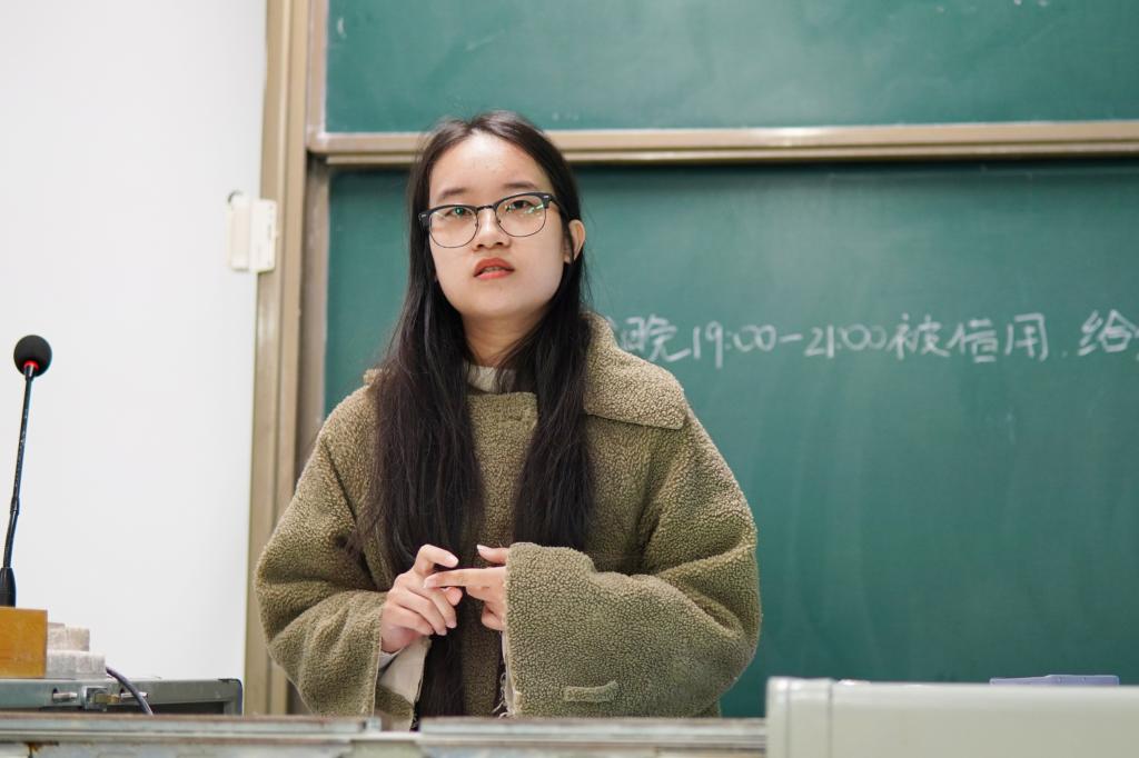 杨诗雨围绕“科研竞赛经历”展开分享,她建议同学们尽早选择感兴趣的方向,积极联系老师、合理利用资源,并进入实验室学习、积累科研经验,多参加相关的专业技能大赛锻炼自己的科研能力。