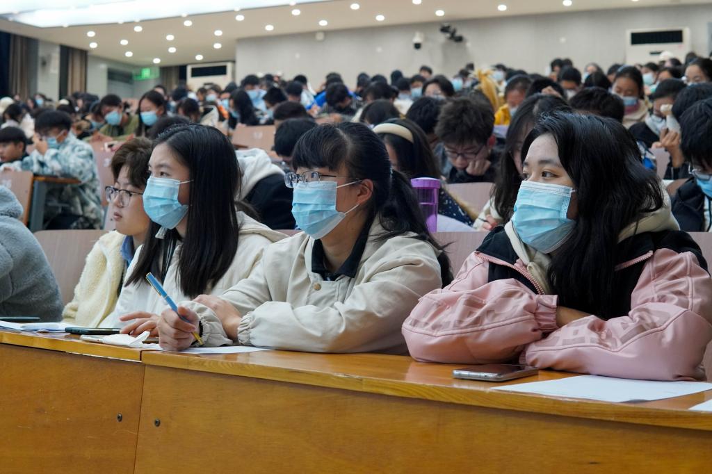 于三教S1报告厅开展2021级新生第一次团课,新生围绕“新时代,共青团”的主题,深入学习习近平新时代中国特色社会主义思想。本次团课由2019级辅导员谭力铭主讲,2021级全体学生参加。
