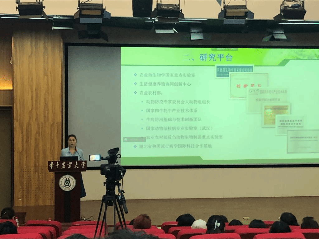 活动伊始,刘正飞教授介绍动物遗传育种学系相关专业的学科特点及课题组的科研成果,他用生动形象的语言为营员们讲解基因编辑等相关技术。黎璐副教授从自身经历讲起,与同学们分享了自己的求学历程。她本科就读于华中农业大学,与华中农业大学的细菌学课题组结缘,最终回到教研室工作。黎璐还讲授了细菌病原微生物学的相关问题。随后,陈颖钰副教授讲解了牛传染病与人传染病的技术研究,研究领域涉及流行病学、致病机理和免疫机理等。课题组的人文氛围浓厚,教研室以陶行知“千教万教,教人求真,千学万学,学做真人”为室训,非常重视学生品格的培养。位灯国教授表示,兽药科学系同样是非常有活力的学系之一,他介绍道,课题组综合应用结构生物学、生物物理化学和计算模拟等技术方法,研究有望成为农用药物靶点的蛋白和核酸,阐明它们致病的结构基础与分子机制。