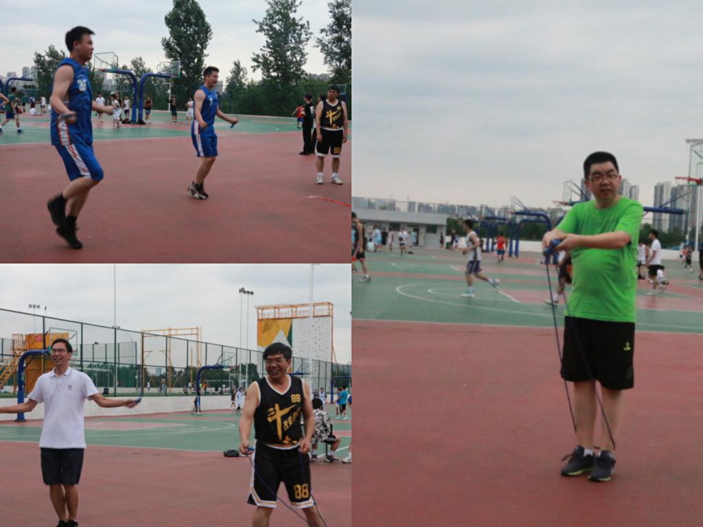 另一边的趣味运动会也如期进行着。地上的气氛热烈而欢快,大家踊跃参与花式踢毽、跳绳,还吸引了不少休息中的篮球队员和老师们一同参与。