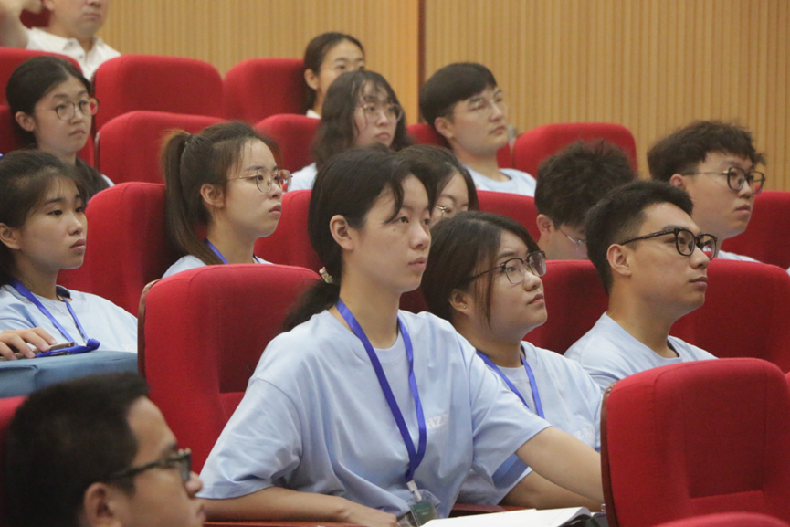 (通讯员 金美君 滕雨萌 汪楚琪)7月8日上午,华中农业大学动科动医学院第六届暑期夏令营兽医学科介绍于农业微生物国家重点实验室B座103报告厅举行。各学系研究生导师代表及来自全国多所高校动物医学相关专业的营员参加了本次会议。本次会议由王湘如教授、周祖涛副教授、胡敏教授、崔旻教授、栗绍文教授、谢书宇教授、刘华珍副教授、戴汉川副教授、胡长敏教授和丁一教授先后依次介绍了兽医学科各方向的研究内容和导师团队情况。