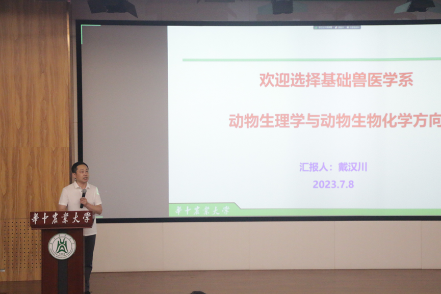 周祖涛副教授介绍微生物与免疫方向的科学概况及各导师研究方向。他表示,本团队依托农业微生物资源发掘与利用全国重点实验室、湖北省预防兽医学重点实验室、兽用发酵原料药与制剂湖北省工程研究中心等诸多优秀平台,经过各师生多年的努力形成了兽医微生物学、兽医免疫学、有益微生物研发三大技术平台,在文章产出、科研转化等方面取得诸多成果。