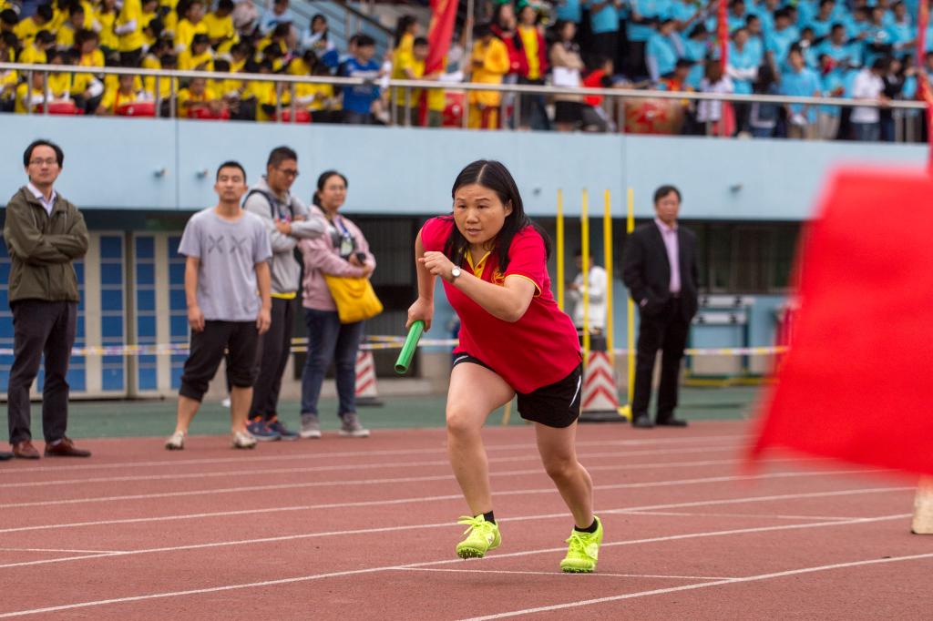 (通讯员:张梦予 摄影:赵婉玥)她握紧手中的接力棒,弯下身子,调整起跑姿势,全神贯注。随着发令枪“砰”的一声,刘华珍咬紧牙关,摆开手臂,奋力加速,红色的身影从眼前飞过,熟练地将手中的接力棒交接给下一位老师。最终,她们获得了教工女子组4x100米第四名。从学生赛场,到教职工赛场,从1996年,到2018年,刘华珍在田径场上已经跑过了22个年头。