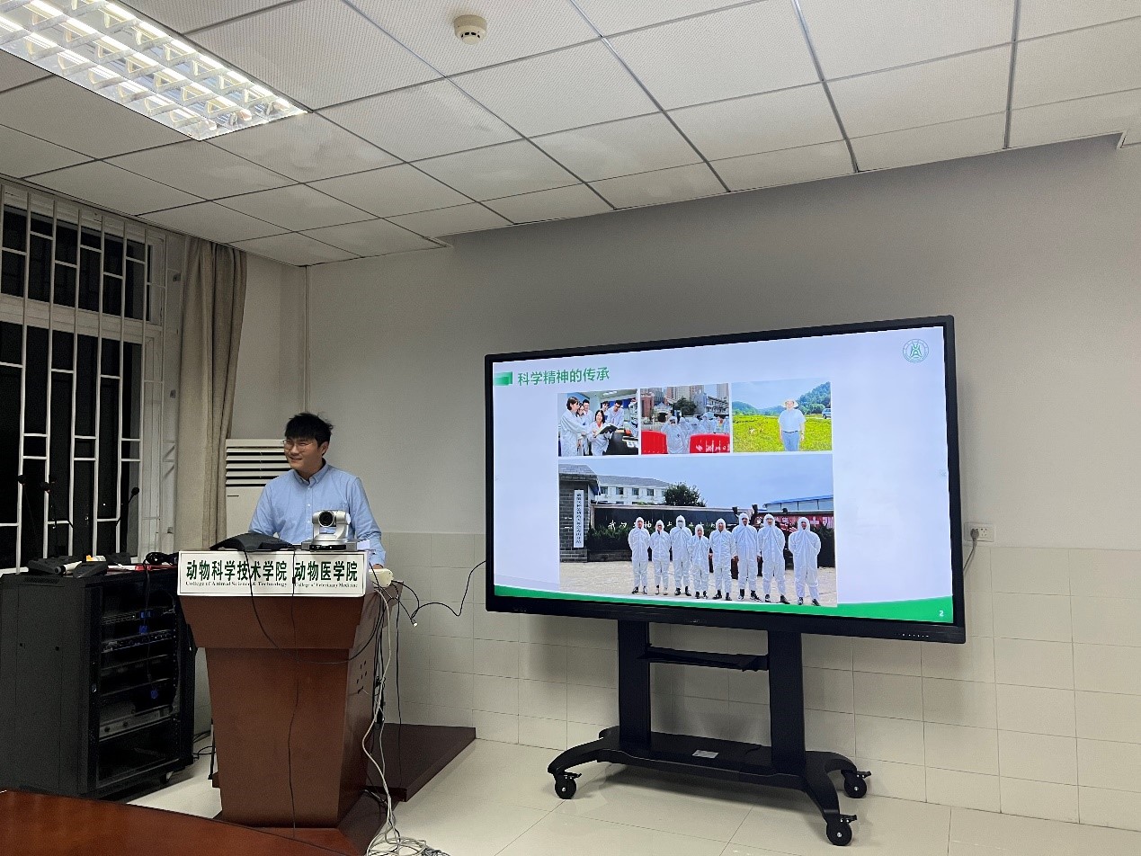 陈彦汝通过“讲述科研故事、凝聚青春梦想”的主题为我们讲述了校史上的科研故事,及其与华农的羁绊。贾雪寅则从巴斯德的科研小故事入手,结合研究生对华农科学精神的传承与发扬,对新时代下的青年学子该如何看、学、做给出见解。陈依文回顾了自己的求学经历和科学家们的事迹,述说启发和思考。熊志峰讲述了“中国核潜艇之父”黄旭华的科研事迹,表达了自身的钦佩与敬仰。