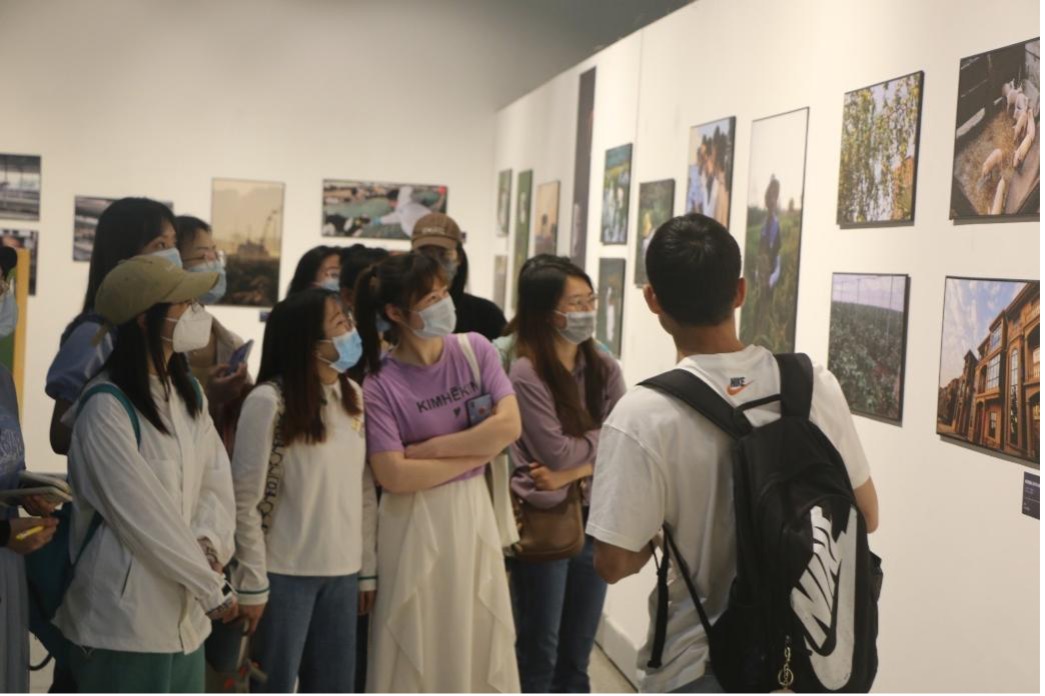 摄影作品拍摄者在介绍作品内涵(郭睿阳 摄)