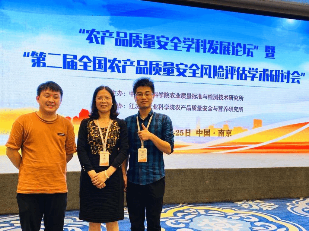 周凯翔(右一)参加农产品质量安全学科发展论坛暨第二届全国农产品质量安全风险评估学术研讨会并做小组汇报