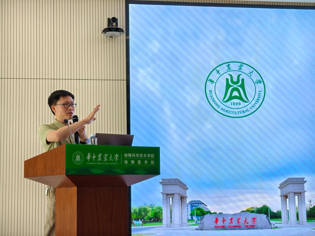 周东海分享了他从湖北省罗田县到华中农业大学的求学路,介绍了现在正在从事的宠物诊疗相关进展,和同学们科普了生活中常见的狂犬病及相关知识。从同学们生活中常见的动物入手,解读了狂犬病的病原、病因和发病特点,介绍了狂犬病的最新科普成果和华中农业大学的参与贡献,提醒同学们狂犬病风险暴露的正确认识和处理方法。最后周东海自豪地给师生分享了华中农业大学的各类科学创新平台和教学动物医院丰富资源,勉励同学们发扬兴趣,在未来的学习工作生活中不断探索、勇往向前。