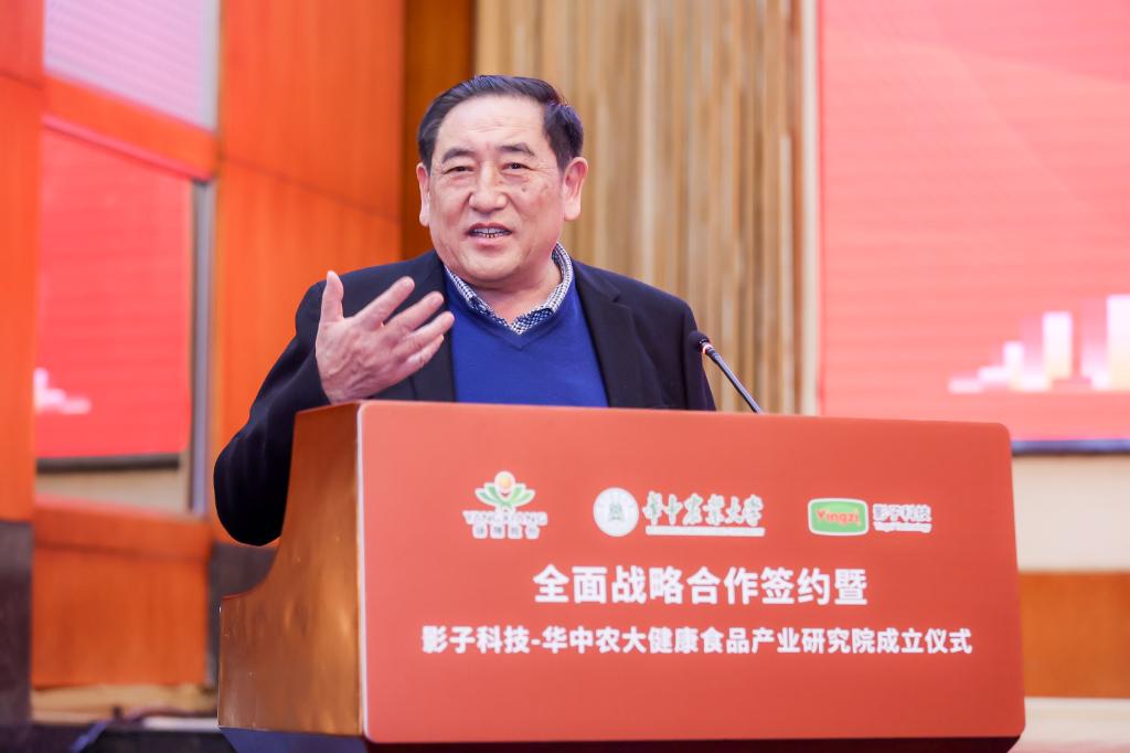 吴骏、李顺清、施亮、高翅、李召虎、陈焕春、莫金枝、杨士葶、张从林、何冰共同为“影子科技-华中农大健康食品产业研究院”触屏揭牌。