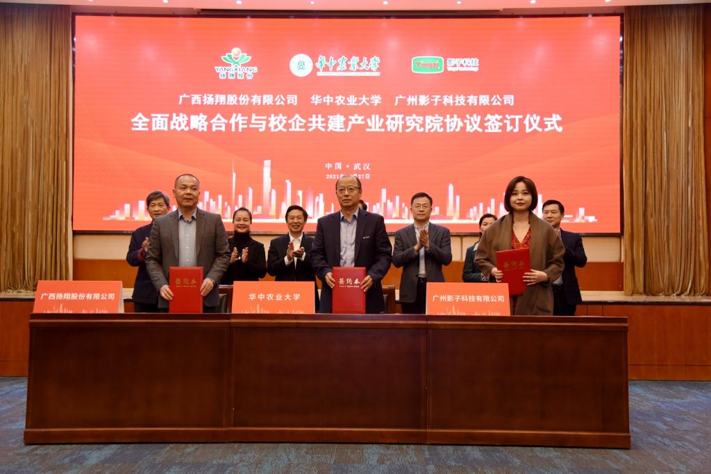 南湖新闻网讯(记者 川竹 学通社记者 魏文萱)11月27日下午,华中农业大学、广西扬翔股份有限公司、广州影子科技有限公司全面战略合作协议签约暨“影子科技-华中农大健康食品产业研究院”成立仪式在国际学术交流中心一楼报告厅举行。这标志着,三方全面开启战略合作新阶段。