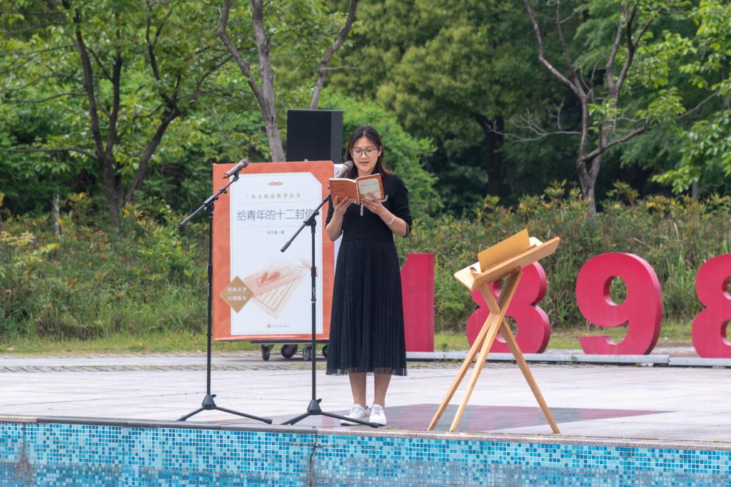 当天下午15:30,狮子山广场喷水池旁书声琅琅,传统特色项目“阅读接力”活动首发在此开启,全校127名师生在现场自发报名,接力阅读了朱光潜先生《给青年的十二封信》,阅读活动持续到晚上九点。